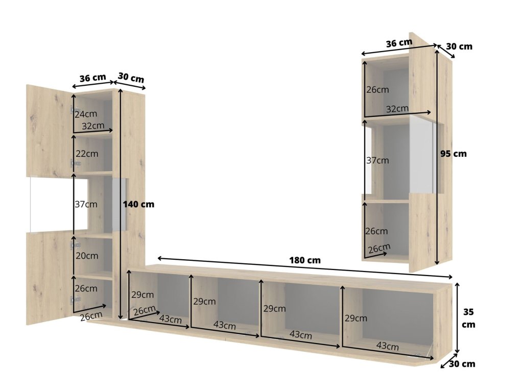 | Sestava obsahuje: | EMMA 05 skříňka - (ŠxVxH): 36 x 140 x 30 cm, EMMA 07 závěsná skříňka - (ŠxVxH): 36 x 95 x 30 cm, EMMA 40 tv stolek - (ŠxVxH): 180 x 35 x 30 cm |