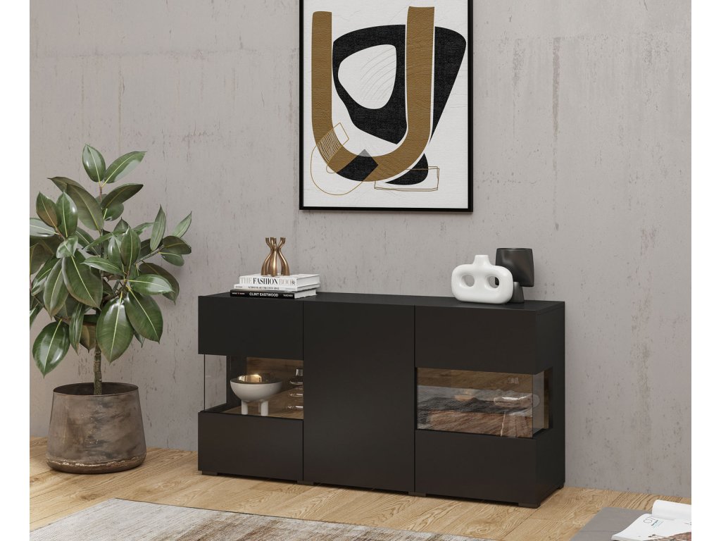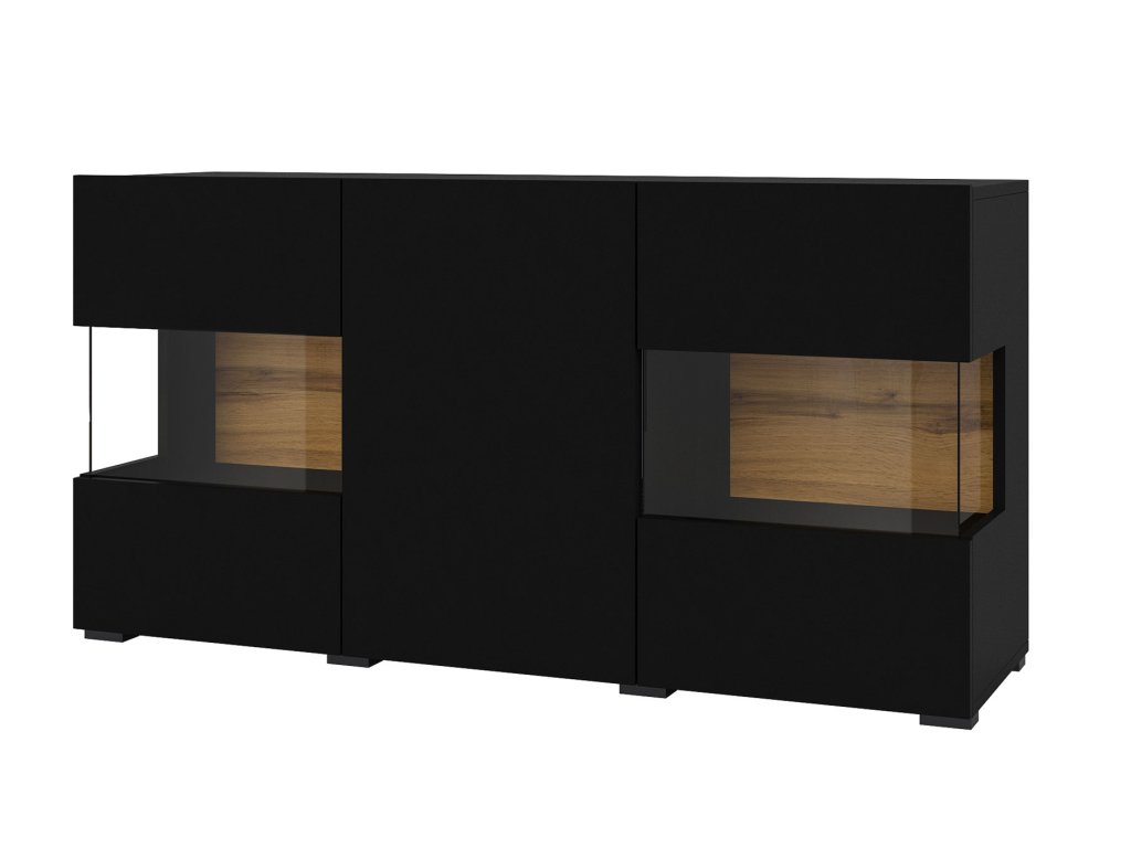 Komoda EMMA 25 má troje vrátka z toho dvoje se sklem za kterými se nachází praktický úložný prostor.