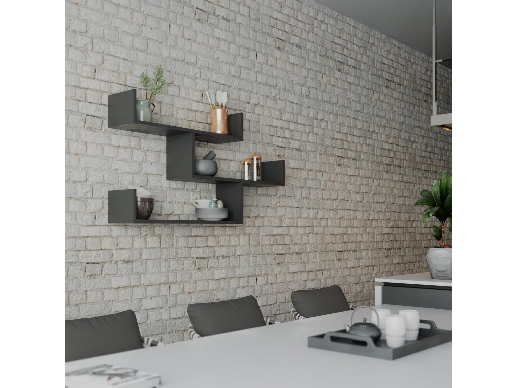 S mnoha policemi nabízí tato nástěnná police dostatek prostoru pro vystavení vašich oblíbených knih, dekorativních předmětů nebo cenných rodinných fotografií. Její jednoduchá, jednolitá antracitová barva dodá vašemu domovu moderní nádech a stane se tak perfektním doplňkem do každé místnosti.