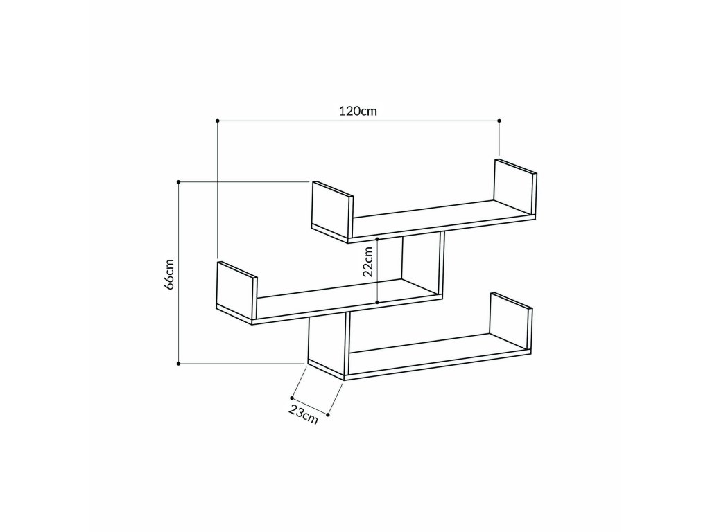 Naši nástěnnou poličku lze snadno připevnit na zeď, což představuje bezpečné a prostorově úsporné řešení pro vaše úložné potřeby. Díky šířce 120 cm, výšce 67 cm a hloubce 22 cm je ideální do každé místnosti, ať už je to obývací pokoj, ložnice nebo kancelář.
