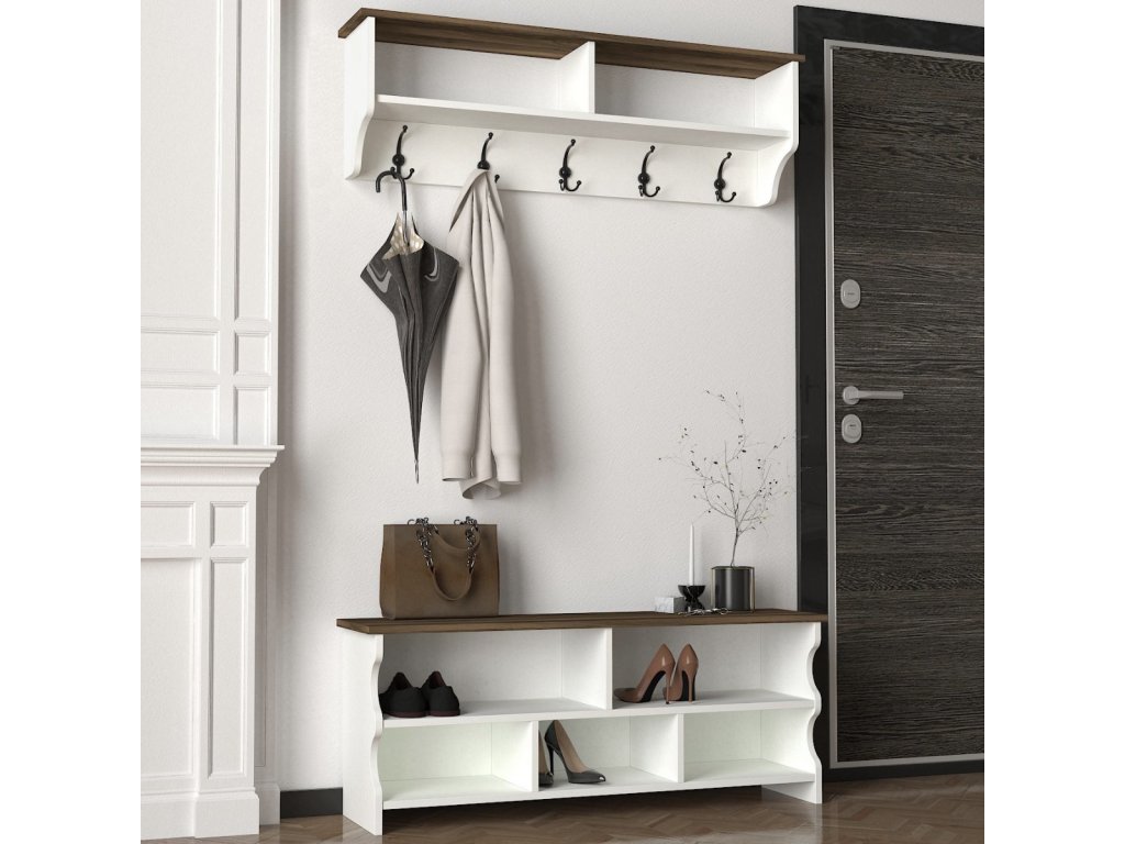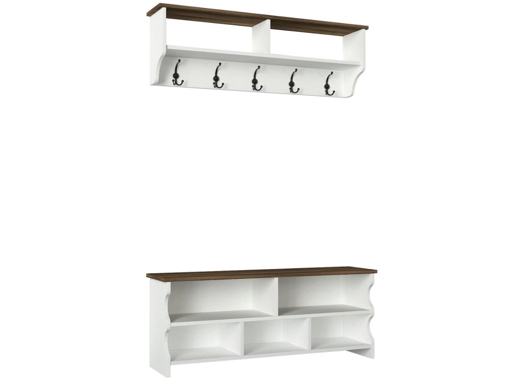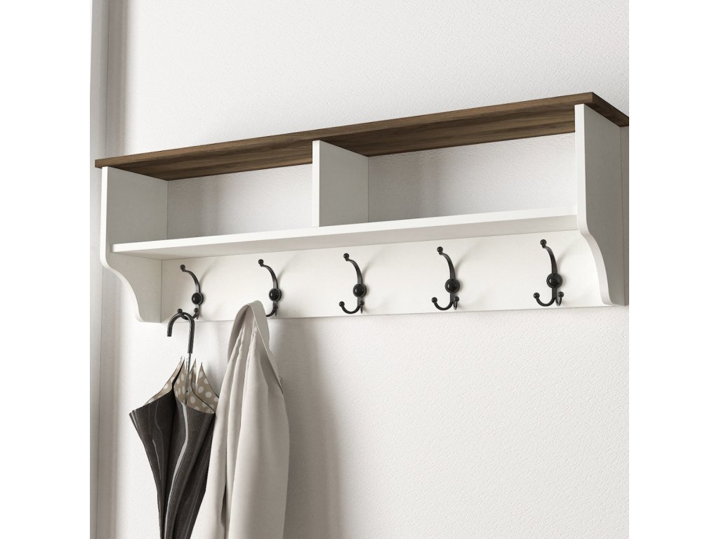 ESTER věšáková stěna, bílá / ořech