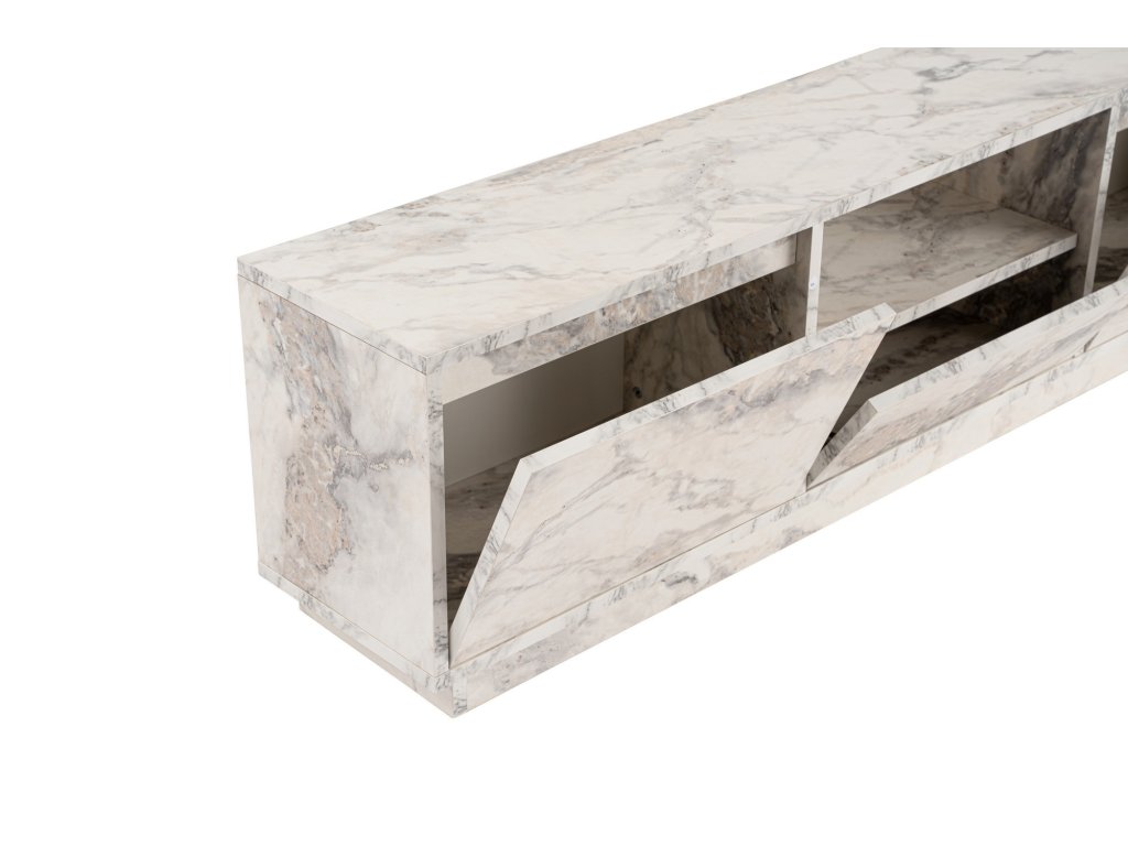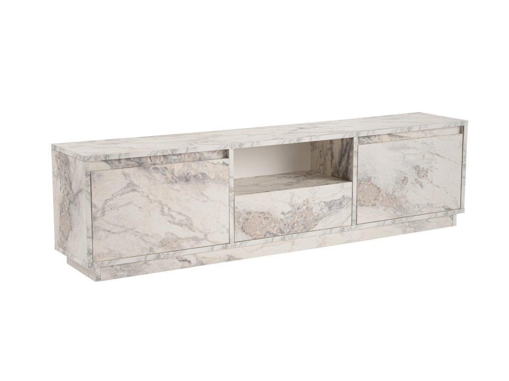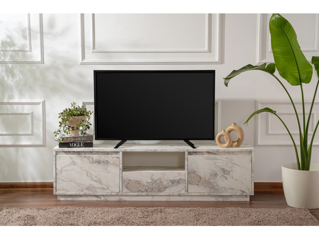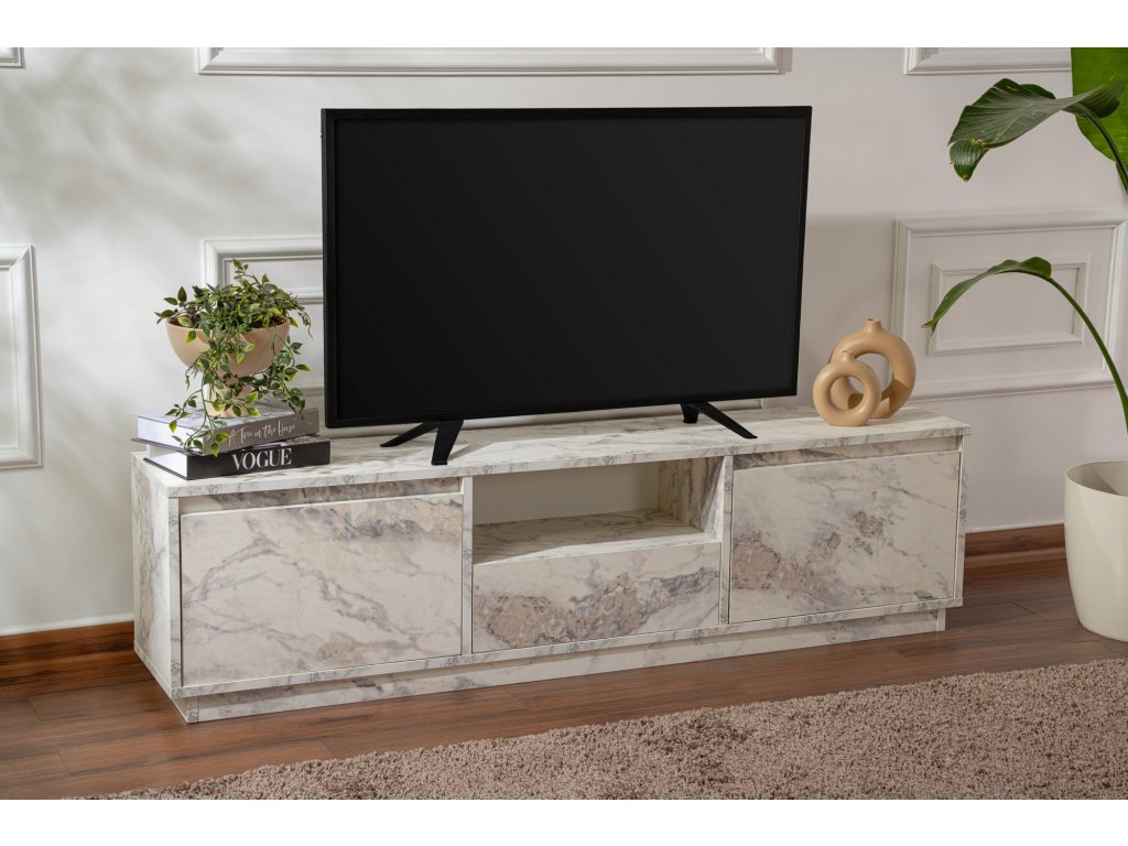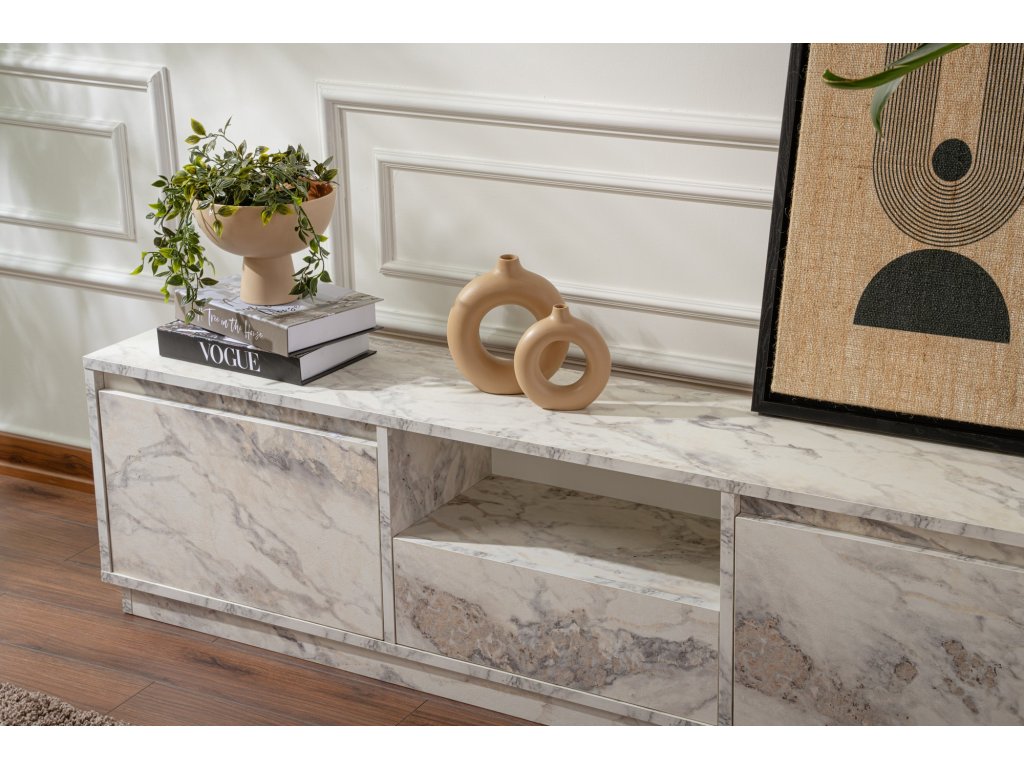 Proměňte svůj obývací pokoj ve stylový a funkční prostor s naším nádherným televizním stolkem v barvě frézie a mramoru. Tento televizní stolek není jen kus nábytku, je to ztělesnění elegance a sofistikovanosti.