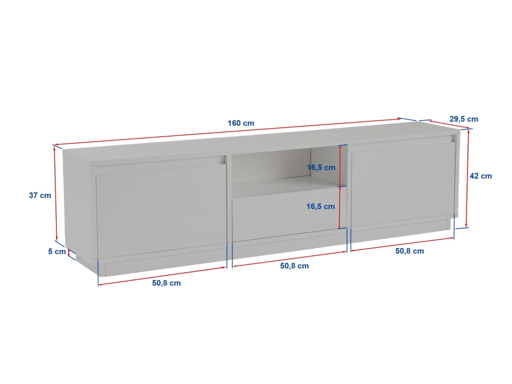 Ať už sledujete své oblíbené pořady nebo pořádáte filmový večer s přáteli, tento televizní stolek vytvoří útulnou atmosféru, kterou nebudete chtít nikdy opustit. Jeho prostorný design pojme televizory o šířce až 160 cm, takže je vhodný pro různé velikosti obrazovek.