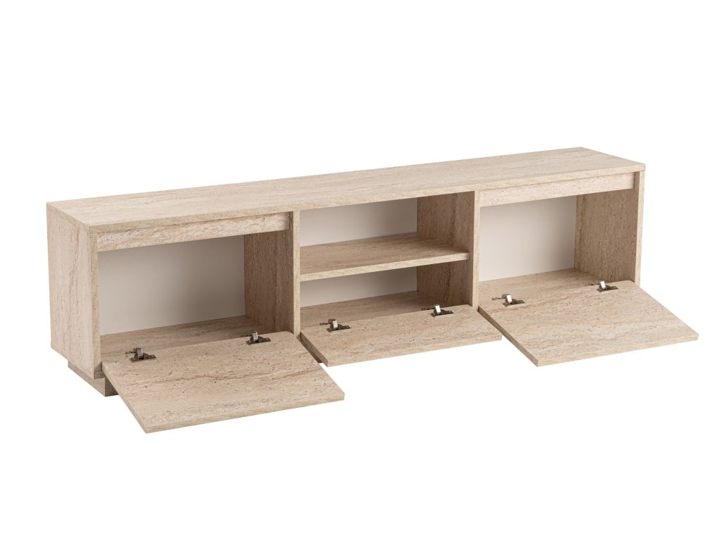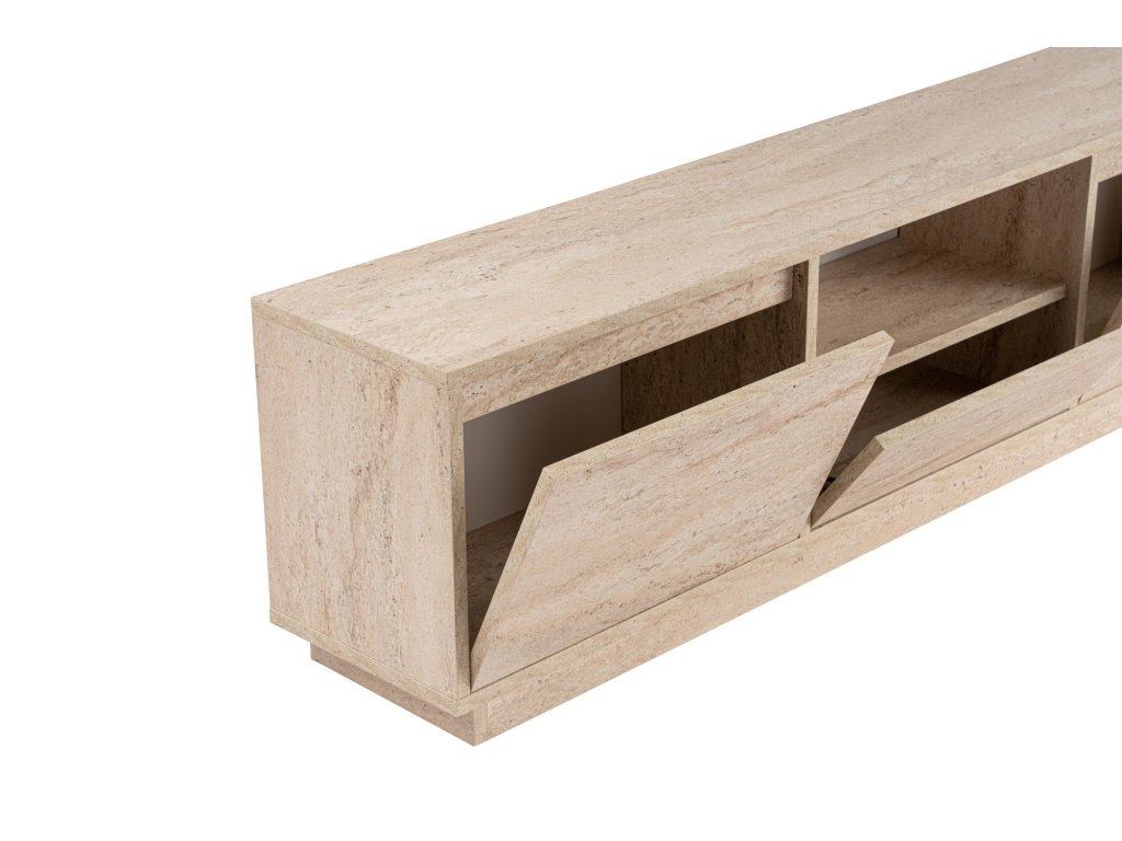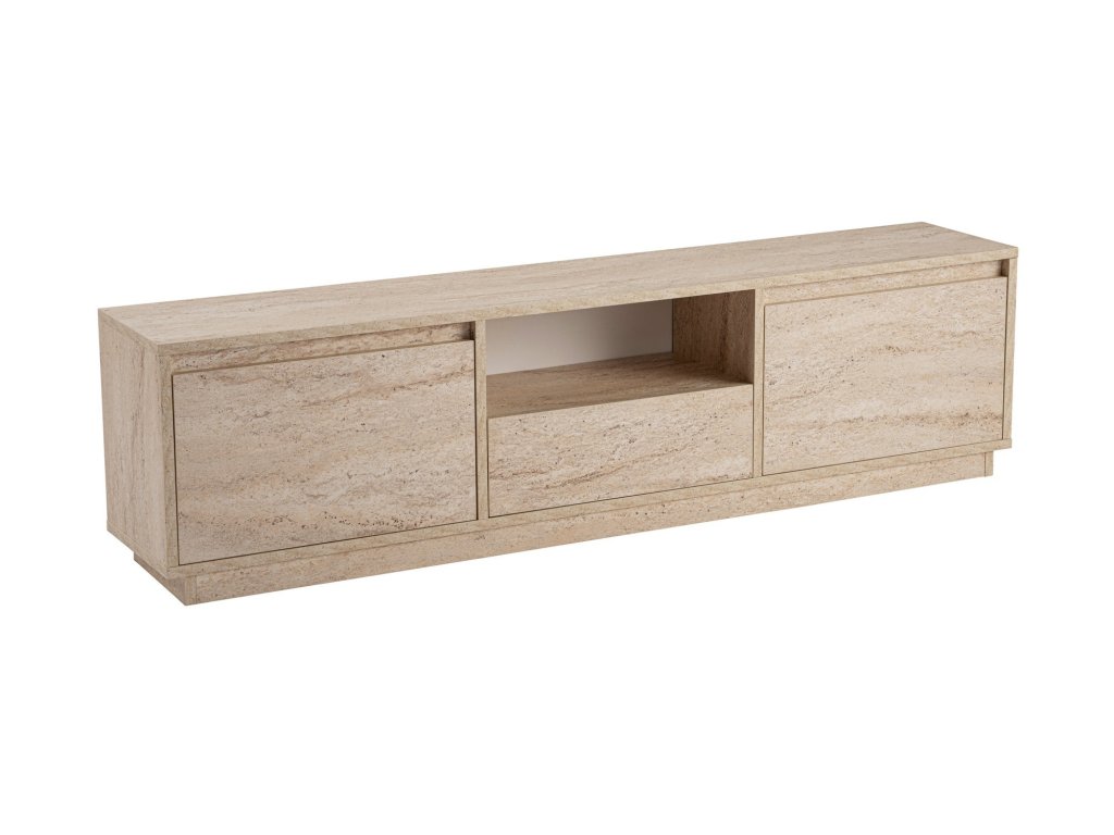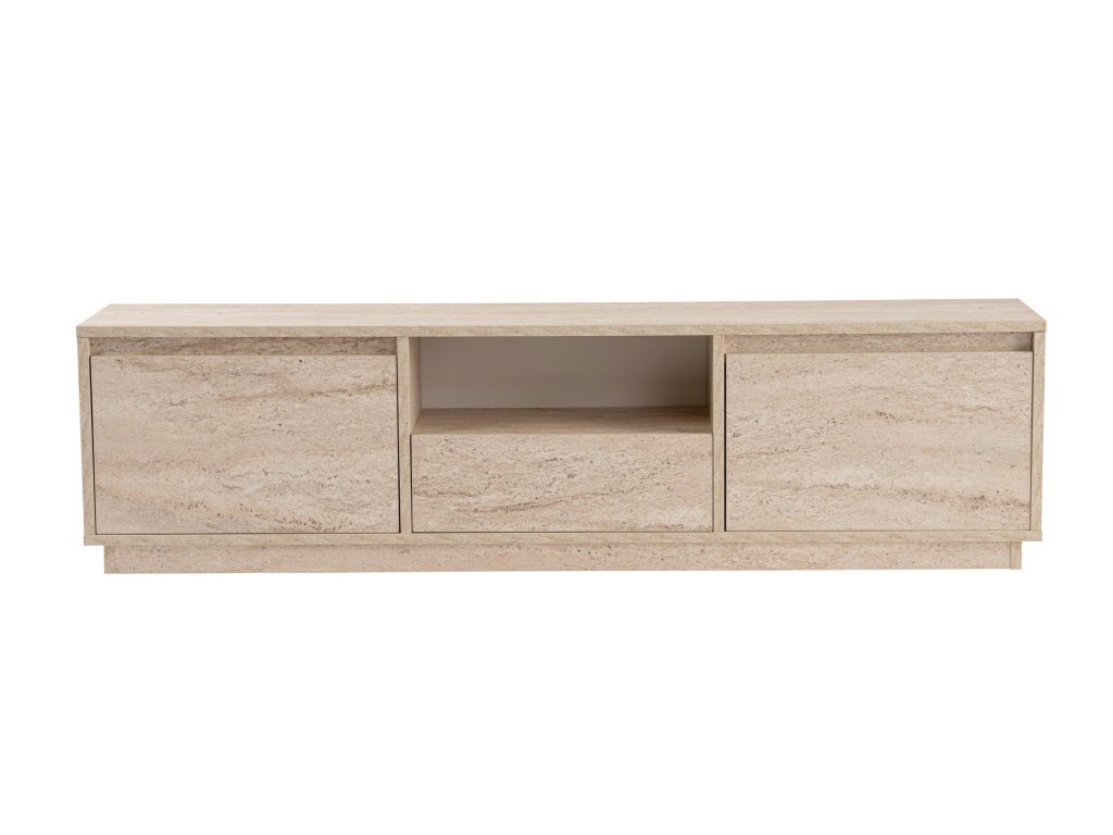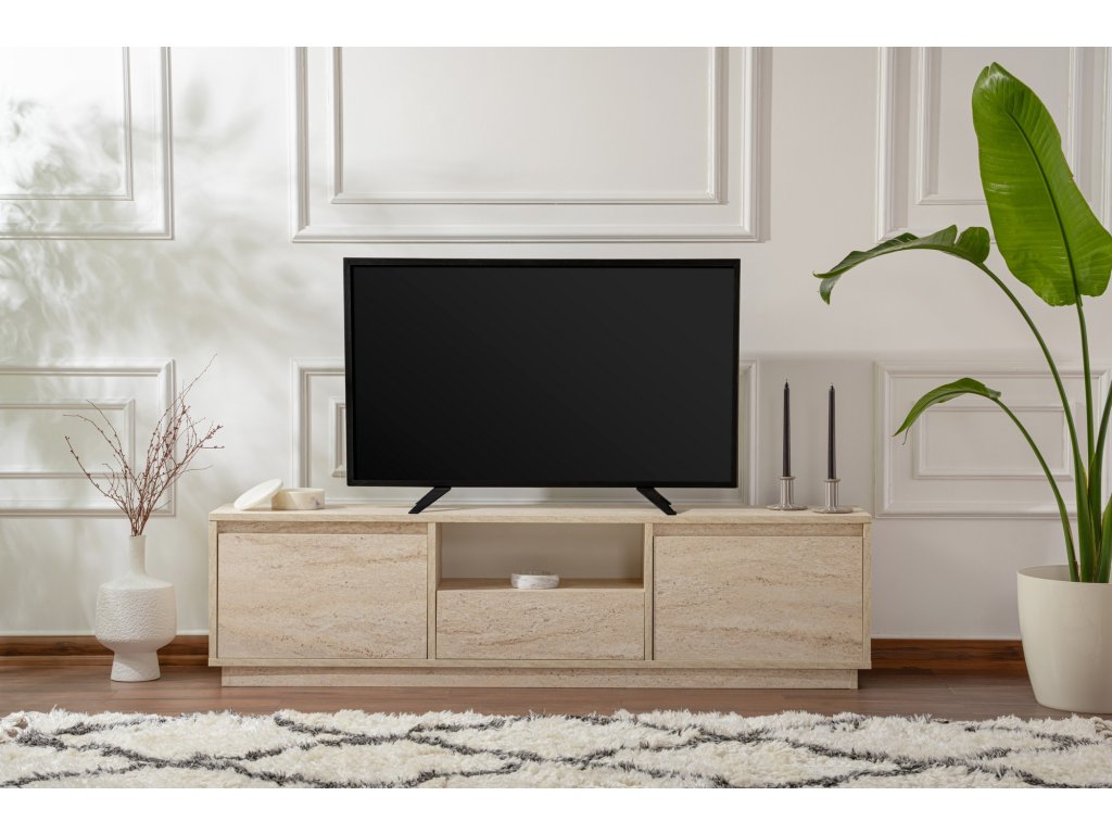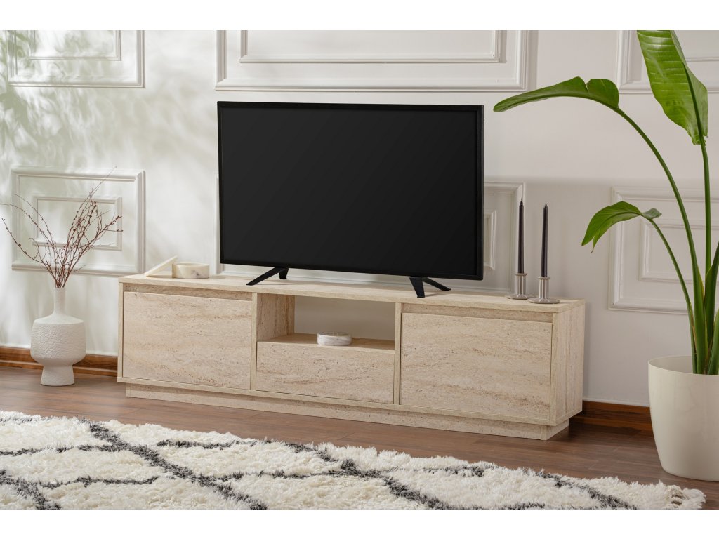 Rozlučte se s nepořádkem a přivítejte elegantní a moderní televizní stolek, který okamžitě pozvedne vzhled vašeho obývacího pokoje. Travertinová barva dodává nádech luxusu, díky čemuž je perfektním doplňkem jakéhokoli stylu bytového zařízení.