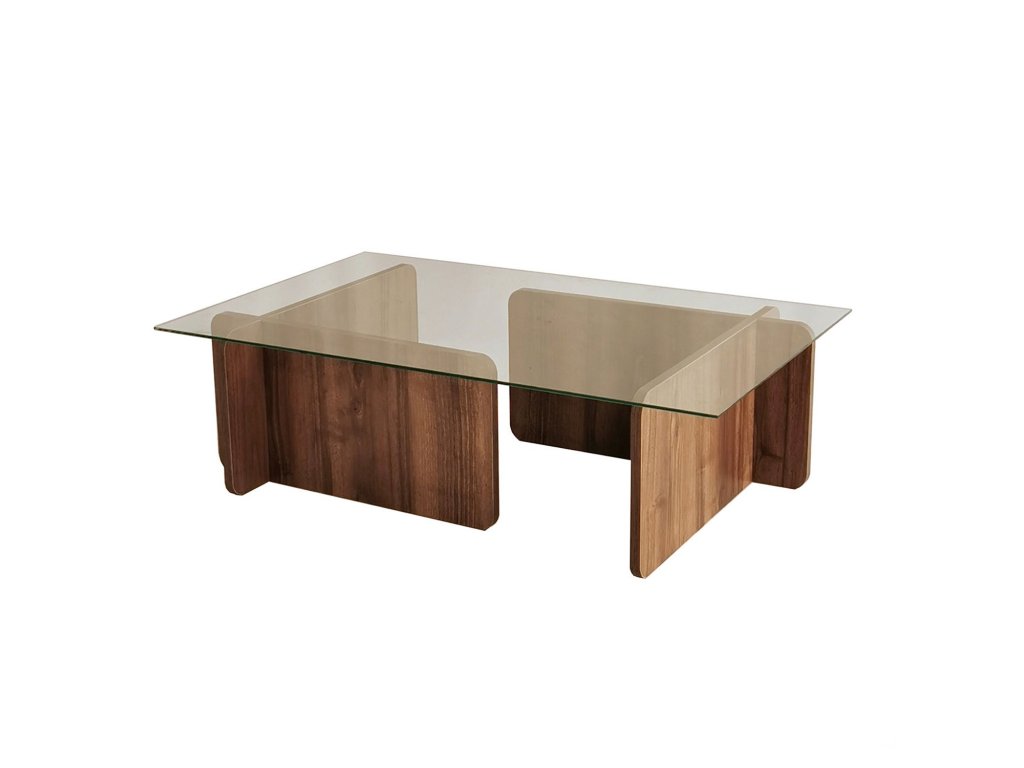 Ořechový dekor dodává stolku teplý a přírodní vzhled, který se hodí do různých stylů interiérů, zatímco skleněné prvky přidávají moderní a vzdušný dojem. Díky jeho kompaktním rozměrům se stolek snadno začlení do menších i větších místností.