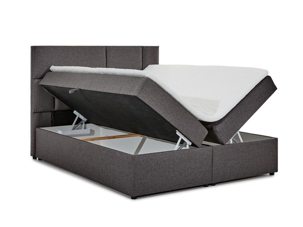 Moderní design postele je propojen s praktickým řešením prostoru. Postel nabízí spací plochu 145 x 200 cm, členěnou na dvě části. Pod každou z nich naleznete úložné boxy. Využívají UP systém otevírání, díky kterému se jednoduchým způsobem dostanete k předmětům uloženým v boxech. bonellové pružiny, kombinovaný s PUR pěnou T25. Pro ještě lepší pocit je součástí postele horní topper o výšce 4 cm. Potah je hypoalergenní, snímatelný a pratelný při 40 ℃. Postel je celočalouněná kvalitní látkou Inari 96