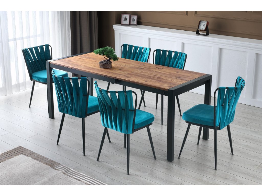 Kombinace sametové látky a sedáků z dřevotřísky s melaminovým povlakem zajišťuje bezkonkurenční pohodlí, zatímco kovový rám a opěradlo poskytují odolnost a stabilitu. Luxusní sametová látka dodává těmto židlím nádech opulentnosti, díky čemuž jsou tyto židle výrazným prvkem v jakémkoli prostředí.