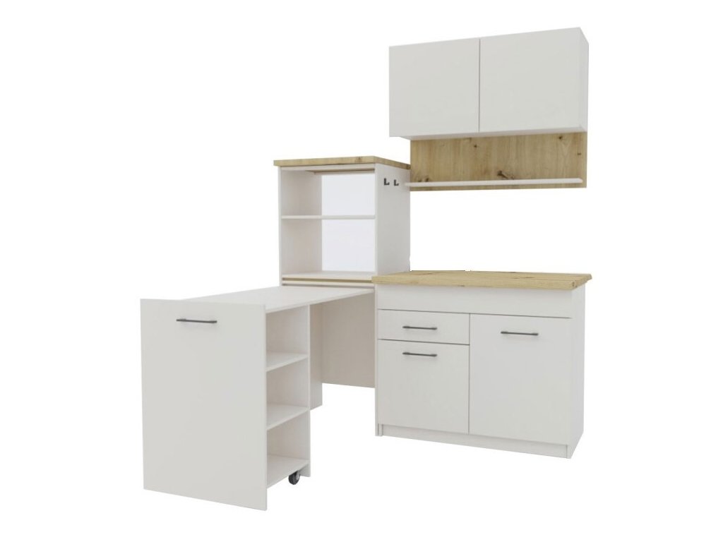 Mikrovlnka ani trouba nejsou součástí. Pracovní deska v barvě dub Artisan je v ceně.