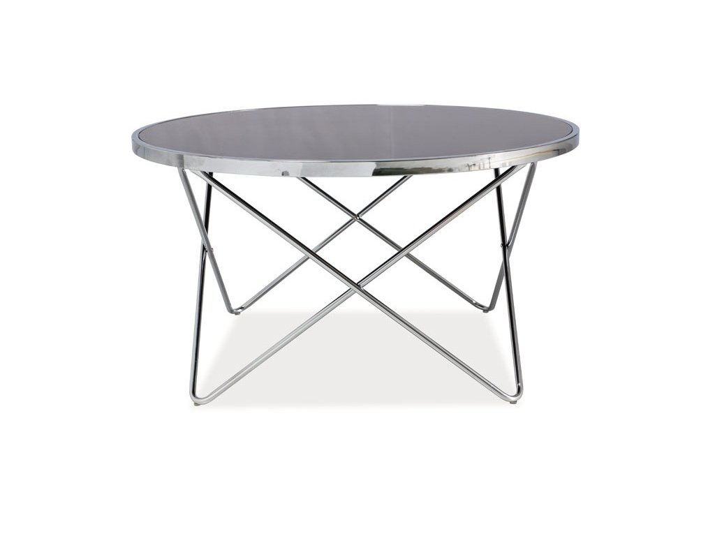 Kulatý konferenční stolek FELICIA v moderním provedení ve stylu loft. Zajímavý design. Konstrukce stolku je kovová pochromovaná, vrchní deska je z tvrzeného černého skla, které je lemováno kovovým rámem. Rozměry stolku (výška/průměr v cm): 46/85. Stolek je dostupný i v menším provedení. Dodáváno v demontu.Buďte první, kdo napíše příspěvek k této položce.