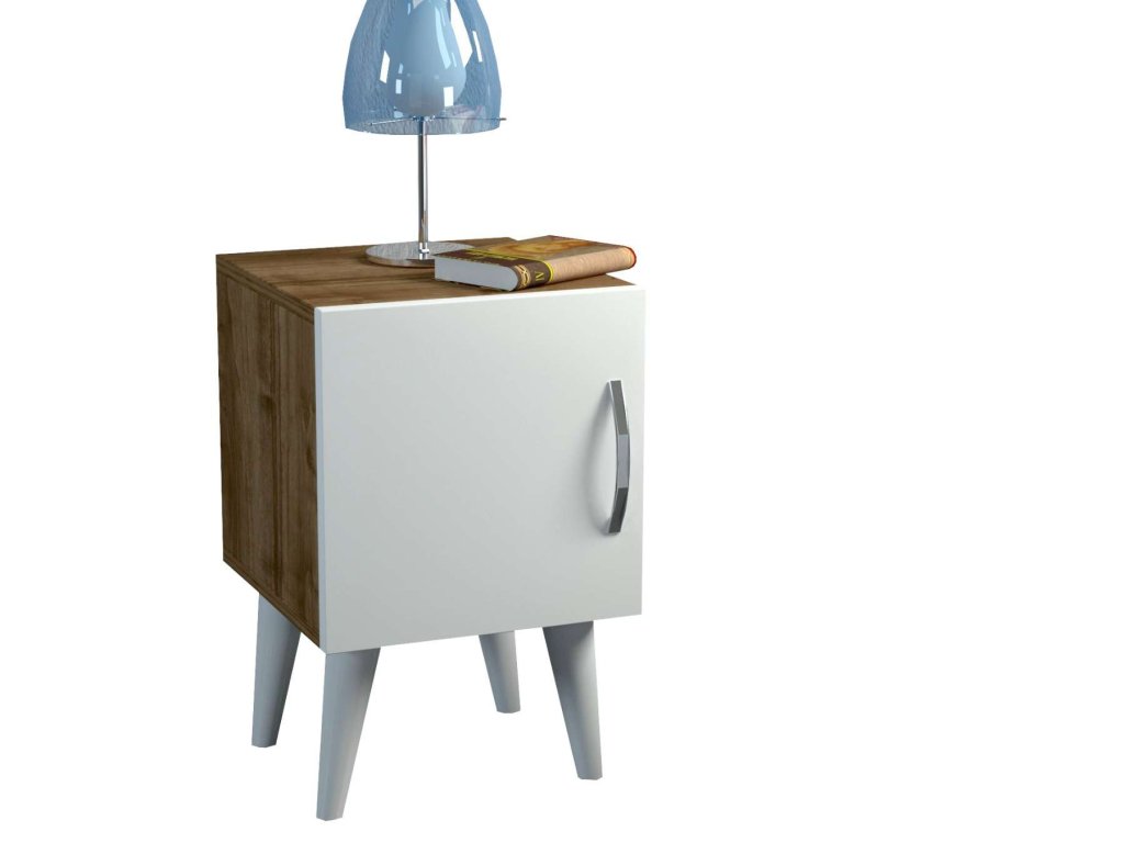 Noční stolek FELLINY 1D se vyznačuje elegantním provedením v kombinaci bílé a ořechové barvy, která přináší moderní a přírodní vzhled do vašeho domova. Díky úzkému designu a jedné skříňce poskytuje tento stolek dostatek úložného prostoru pro vaše věci, aniž by zabíral mnoho místa.