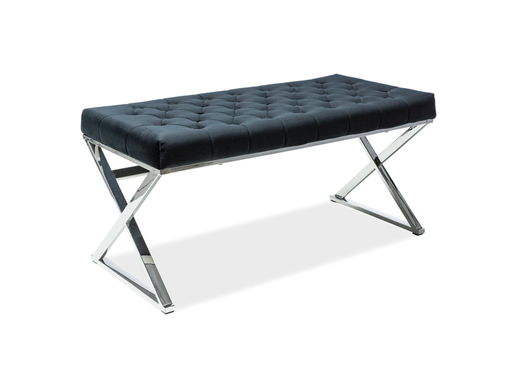 Moderní čalouněná lavice, která nesmí chybět v žádném moderním interiéru. Můžete ji umístit jak do předsíně, chodby, tak ložnice či obývacího pokoje. Pohodlné sezení Vám poskytne sedák, který je očalouněn černou sametovou látkou s dekoračními všitými knoflíčky. Konstrukci lavice tvoří pochromovaný kov. Rozměry lavice (výška/šířka/hloubka v cm): 48/100/46. V naší nabídce naleznete i další čalouněné lavice.