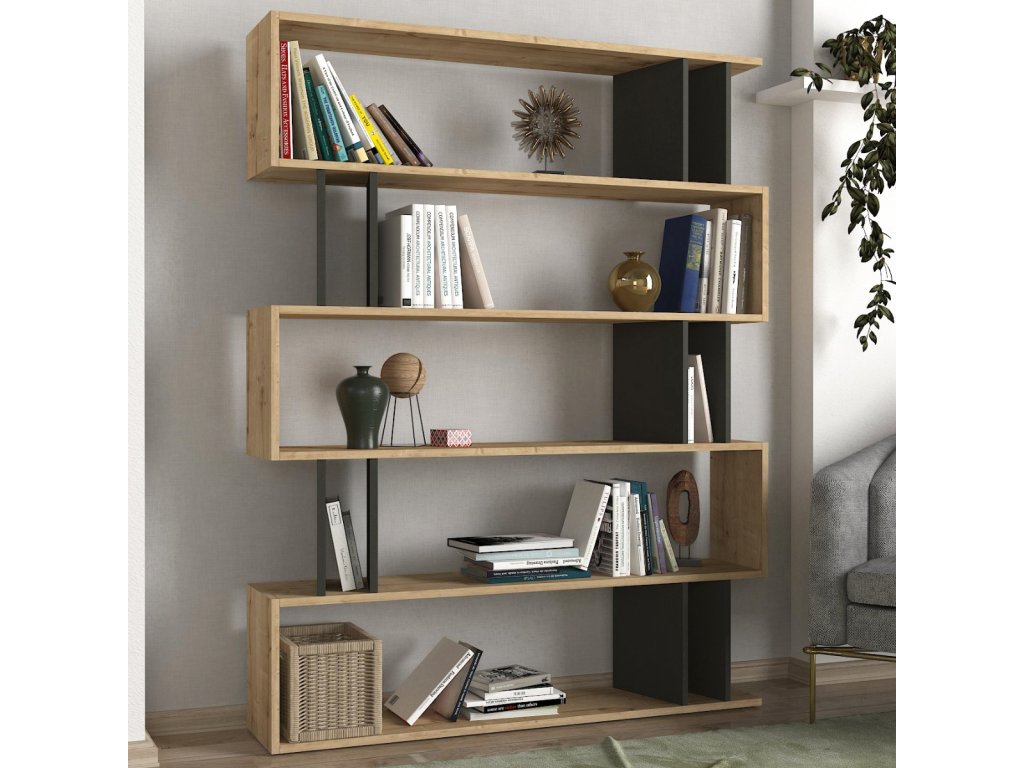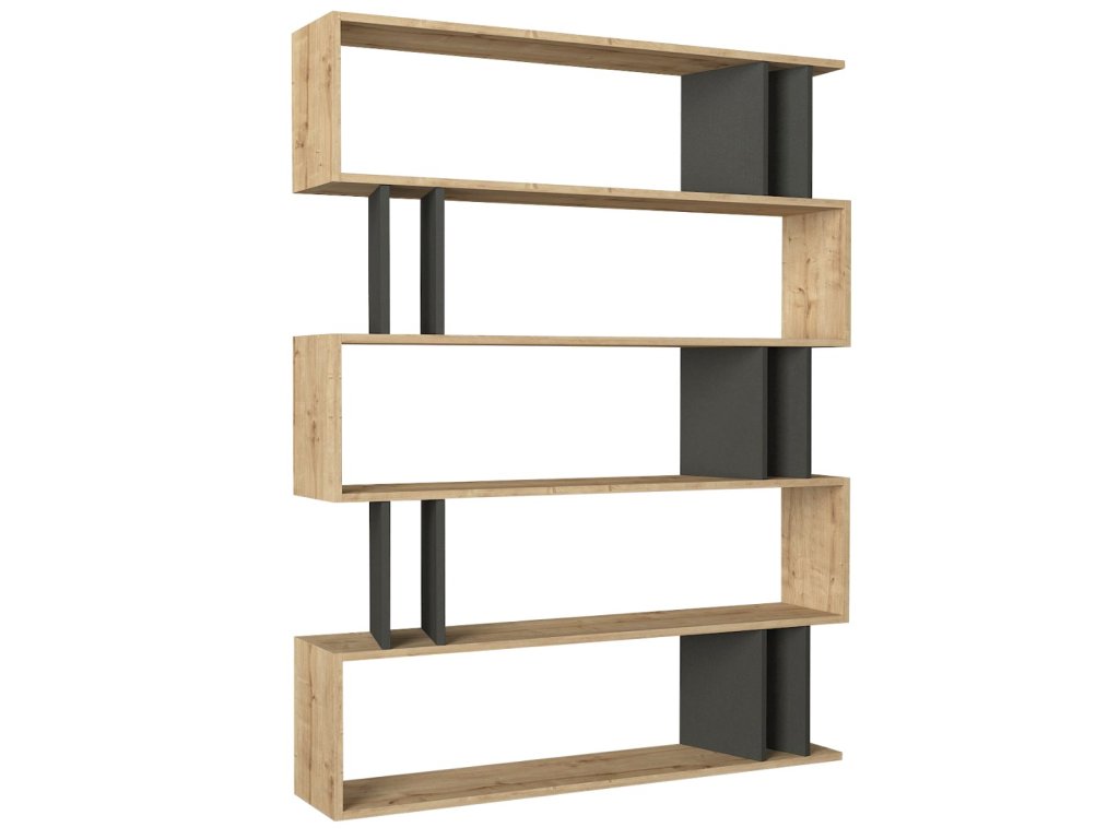 Moderní regál FENTYVas zaujme svým designovým provedením a kombinací barev, které jsou vhodné zejména do moderních interiérů. Regál je ideální pro uložení knih, ale i dekorací či květin. Díky svým rozměrům regál lze umístit ke stěně nebo volně do místnosti, čímž vznikne zajímavé členění prostoru.