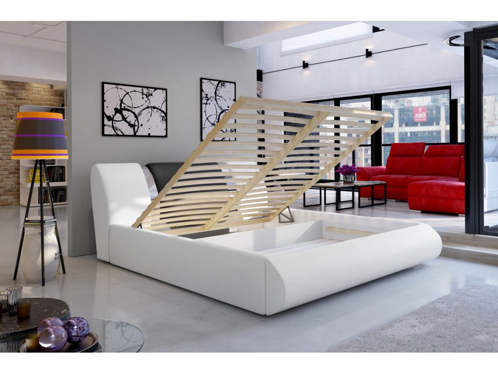 Čalouněná postel FERIE je dominantním prvkem vhodným do moderní ložnice. Unikátní čelo postele s výjimečným provedením zaujme na první pohled. Kombinace látky a lesklých pruhů zvýrazňuje celkový vzhled. Obloukové tvary dodávají posteli ladnost a eleganci. Díky výklopnému systému roštu nabízí postel úložný prostor, který oceníte v každé domácnosti. Měkké části postele jsou vyrobeny z PUR pěny T 2542 a čalouněné kombinací ekokůže Soft 29 a látky Inari 96. Součástí postele je rošt, matraci je třeba si doobjednat. Doporučujeme rozměr 140 x 200 cm. Postel FERIE 140 patří mezi menší postele. Nabízí spací plochu 140 x 200 cm. Výška sezení bez matrace je 32 cm. Celkový rozměr postele (š/v/h): 157 x 239 x 83 cm. V naší nabídce naleznete tuto postel ve více barevných provedeních i šířkách. Dodáváme v demontu.Doplňkové parametry