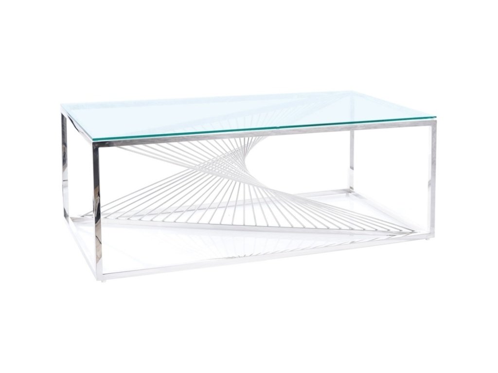 Stolek je vyroben z tvrzeného čirého skla. Konstrukce stolku je z nerezavějící oceli ve stříbrné barvě. Je v obdélníkovém tvaru.