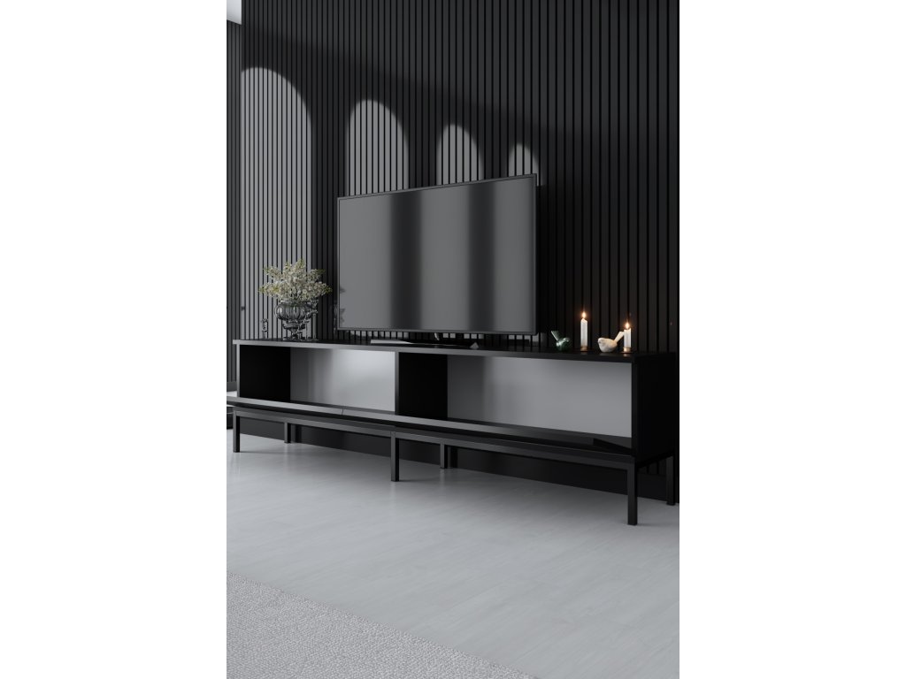 Tento televizní stolek s kovovými nohami vyzařuje eleganci a dodává každému prostoru nádech moderního kouzla. Černá barva (barvy) produktu se bez námahy hodí do jakéhokoli interiéru, což z něj činí všestrannou volbu pro váš domov. Jeho velkorysá šířka 180 cm poskytuje dostatek prostoru pro vaši televizi, herní konzole a další mediální zařízení, zatímco výška 47 cm a hloubka 30 cm nabízejí optimální pozorovací úhly pro skutečně pohlcující zážitek ze zábavy.