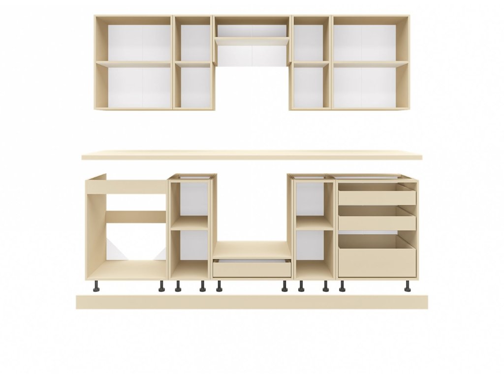 | Sestava obsahuje: | 2 ks horní dvoudveřová 60 cm 2 ks horní jednodveřová s vitrínou 30 cm 1 ks digestořová 60cm 1 ks dolní dvoudveřová dřezová 60 cm 2 ks dolní jednodveřová 30cm 1 ks na vestavnou troubu 60 cm 1 ks dolní se zásuvkami 60 cm |