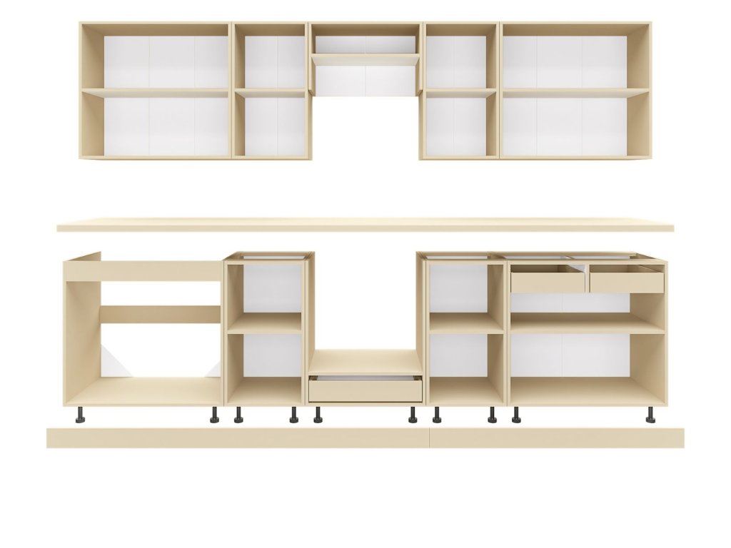 | Sestava obsahuje: | 2 ks horní dvoudveřová 80 cm 2 ks horní jednodveřová 40 cm 1 ks digestořová 60 cm 1 ks dolní dvoudveřová dřezová 80 cm 2 ks dolní jednodveřová 40 cm 1 ks na vestavnou troubu 60 cm 1 ks dolní dvoudveřová se zásuvkami 80 cm |