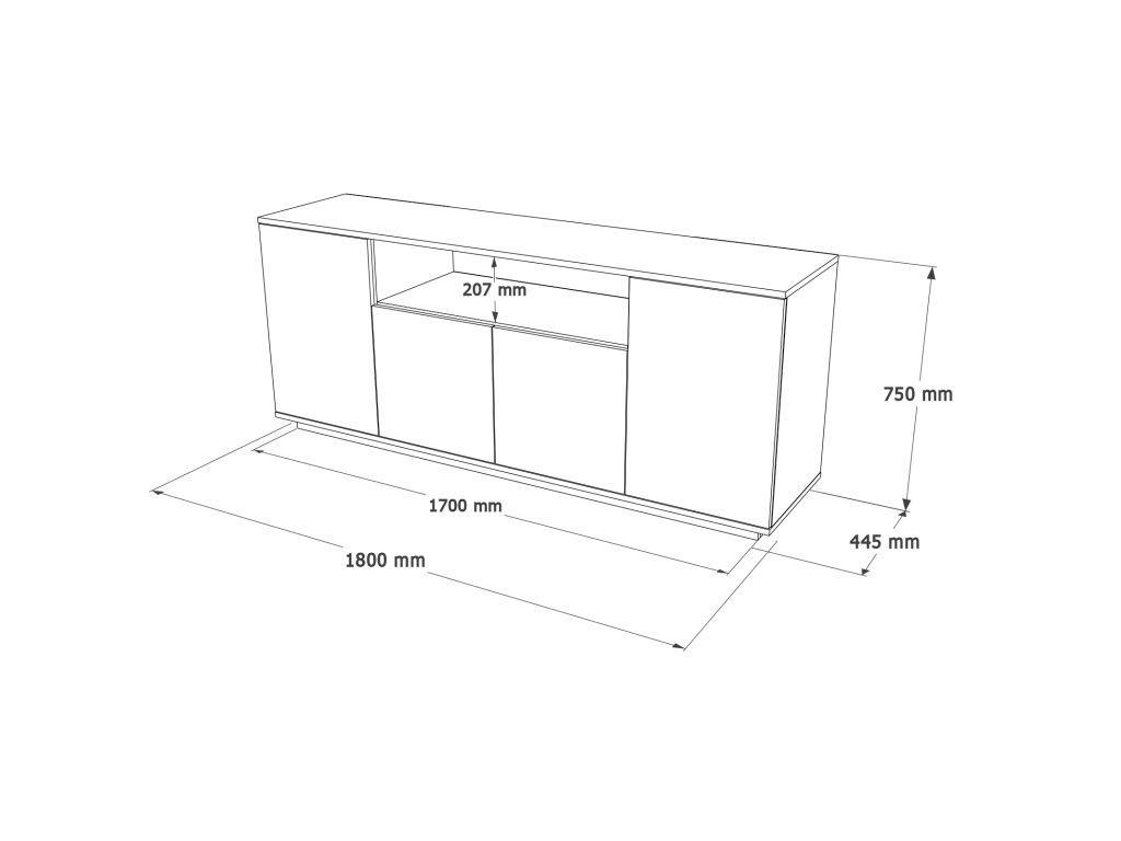 FREY 15 nabízí dostatek úložného prostoru díky čtyřem dvířkům, která skrývají praktické odkládací police. Tento kus nábytku je ideální pro uschování oblečení, knih, dekorací nebo jiných nezbytností. Jeho široký design a kombinace barev dodají vašemu interiéru sofistikovaný a moderní vzhled.