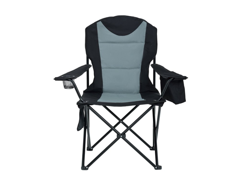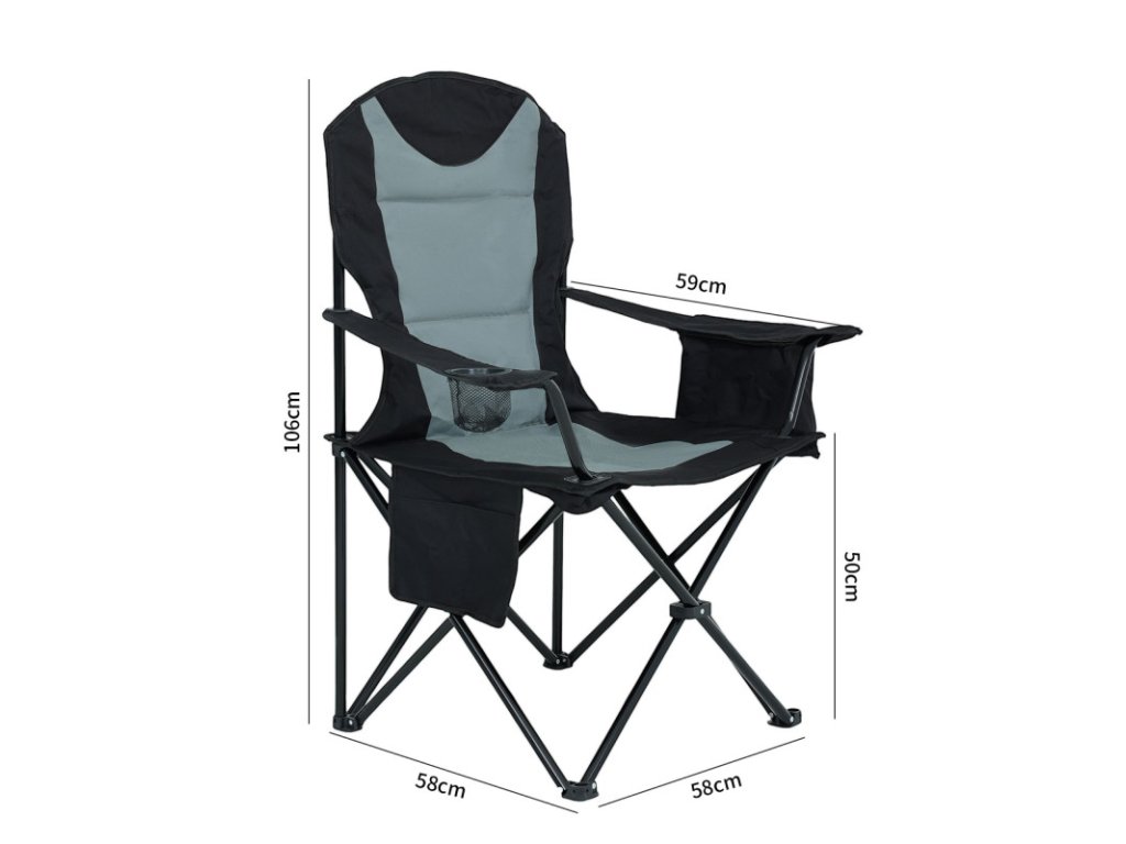 FYNTO kempingová židle s držákem na sklenici a chladící nádobou, šedá