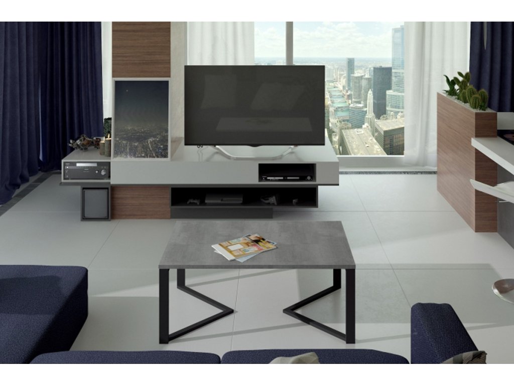 Konstrukce stolku je vyrobena z kovu, v barevném provedení černá. Deska je z kvalitní LTD desky, v módním odstínu beton. Tloušťka desky je 1,8 cm. Celkový rozměr stolku (š/v/h): 90 x 42 x 60 cm.