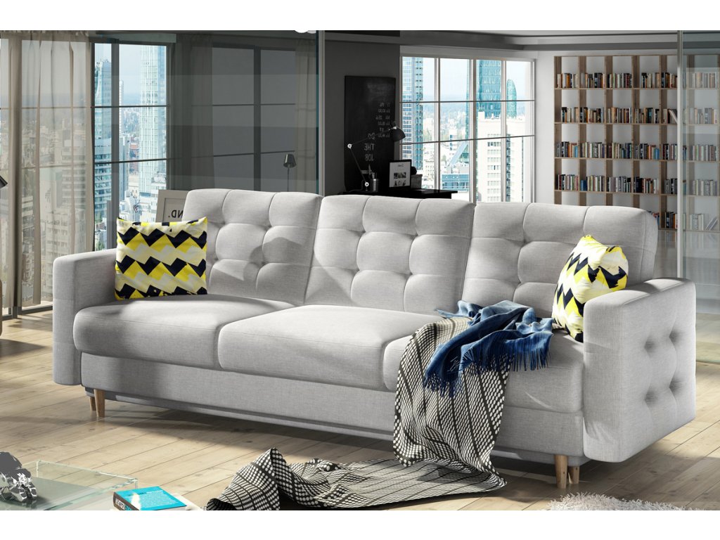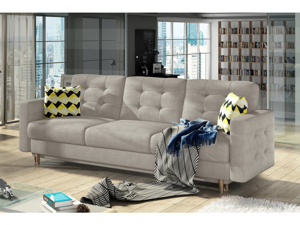 Třísedák GARD je moderním a stylovým nábytkem, vhodným do obývacího, pokoj pro hosty, ale i do dětského pokoje. GARD nabízí pohodlné sezení pro 3 osoby s praktickými područkami na obou stranách sedačky. Efektním a dominantním prvkem sedačky je prošití, které se nachází na opěrkové části ale také na bočnicích. Takto je design sedačky elegantně propojen a vytváří zajímavý celek. Nevýrazné nožičky v barvě přírodního dřeva dotváří celkový vzhled sedačky. Třísedák GARD nabízí pohodlné sezení díky kombinaci materiálů. Sedací část je vyrobena z vlnovcové pružiny a PUR pěny s tvrdostí T3030. Opěrková část je vyrobena z PUR pěny s tvrdostí T2542. Takto se dosáhne ideálního provedení pro Vaše pohodlí. Součástí trojsedáku je také praktická funkce rozkladu. Sedačku lze rozložit za pomoci DL-automatu, čímž si vytvoříte účelnou spací plochu 136 x 197 cm, vhodnou pro občasné spaní. Třísedák je čalouněný kvalitní látkou Paros 2. Součástí sedačky jsou i estetické designové polštářky, které jsou čalouněné látkou Zigzag 53. Rozměry (š/h/v): 235 x 95 x 86 cm. Hloubka sedu: 46 cm, výška sedu: 44 cm.Doplňkové parametry
