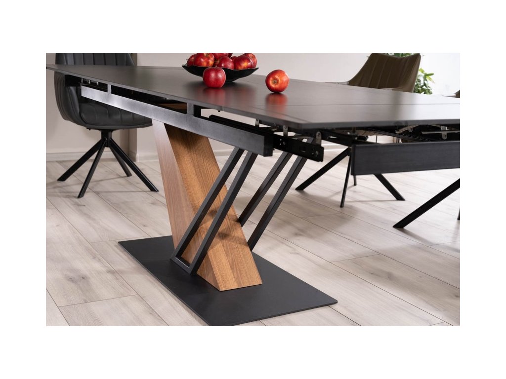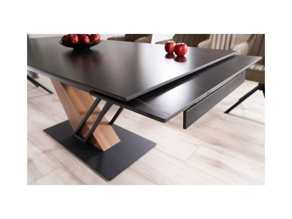 Vrchní deska je keramická. Konstrukce stolu je vyrobena v kombinaci MDF desky, kovu a přírodní dýhy. Barevné provedení: černá / jasan.