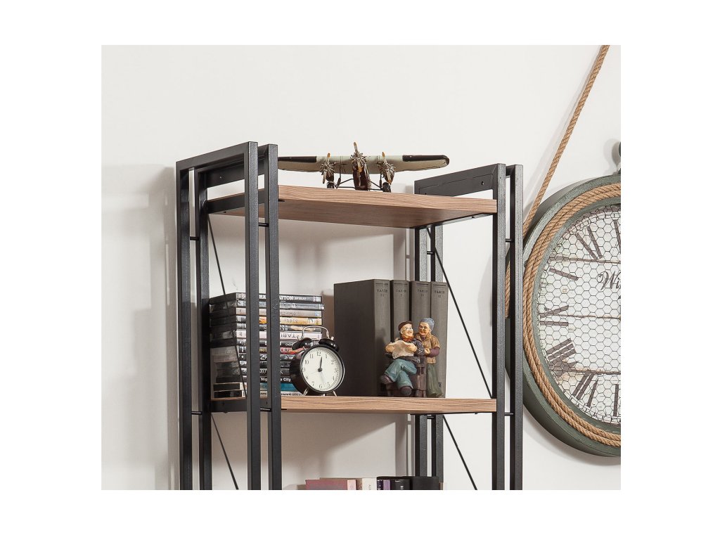 Knihovna GEOGRAPH je ideálním doplňkem do obývacího pokoje, který spojuje funkčnost a styl. Díky kombinaci borovicového dekoru a černých kovových prvků přináší moderní industriální vzhled, který oživí každý interiér.