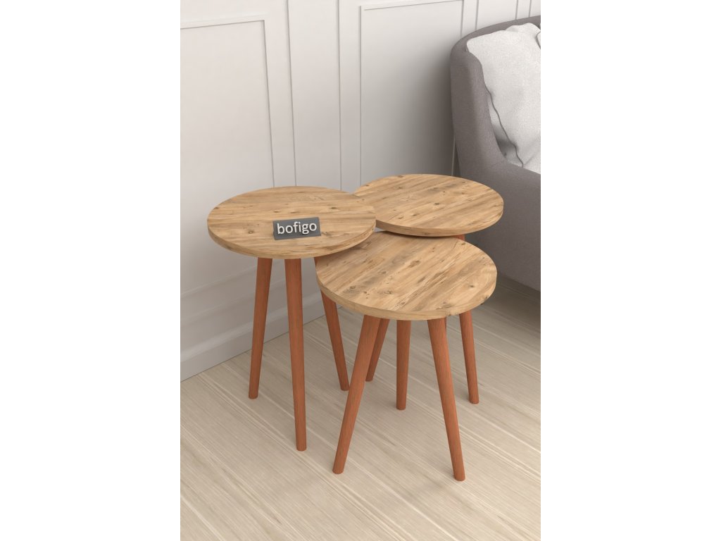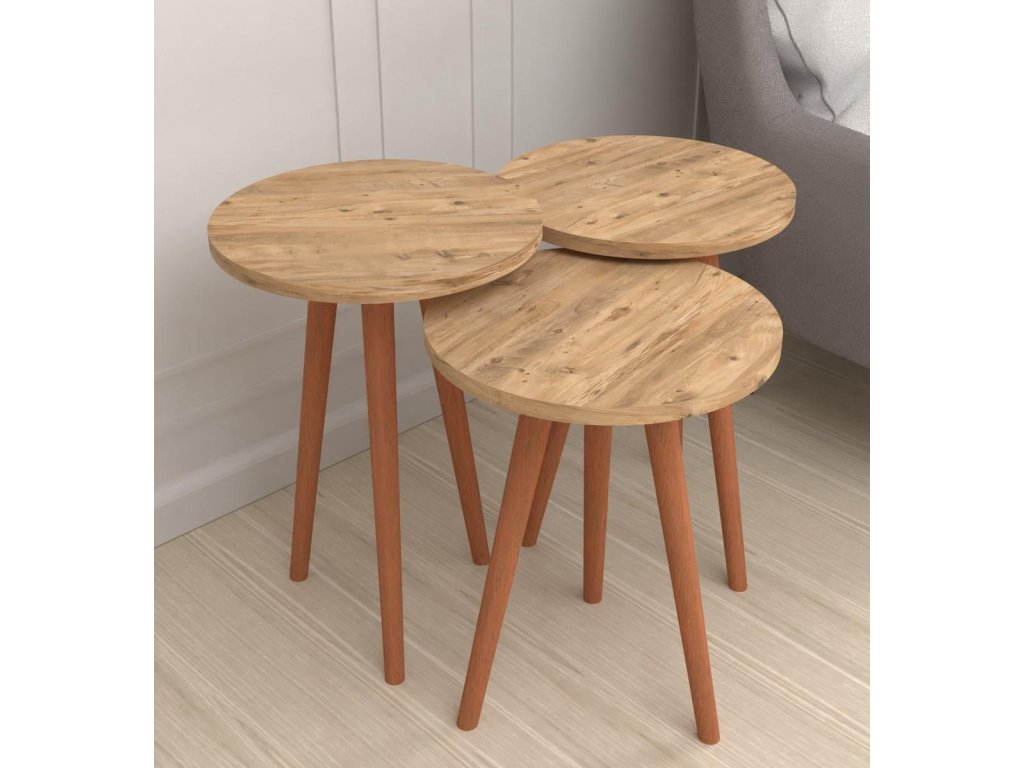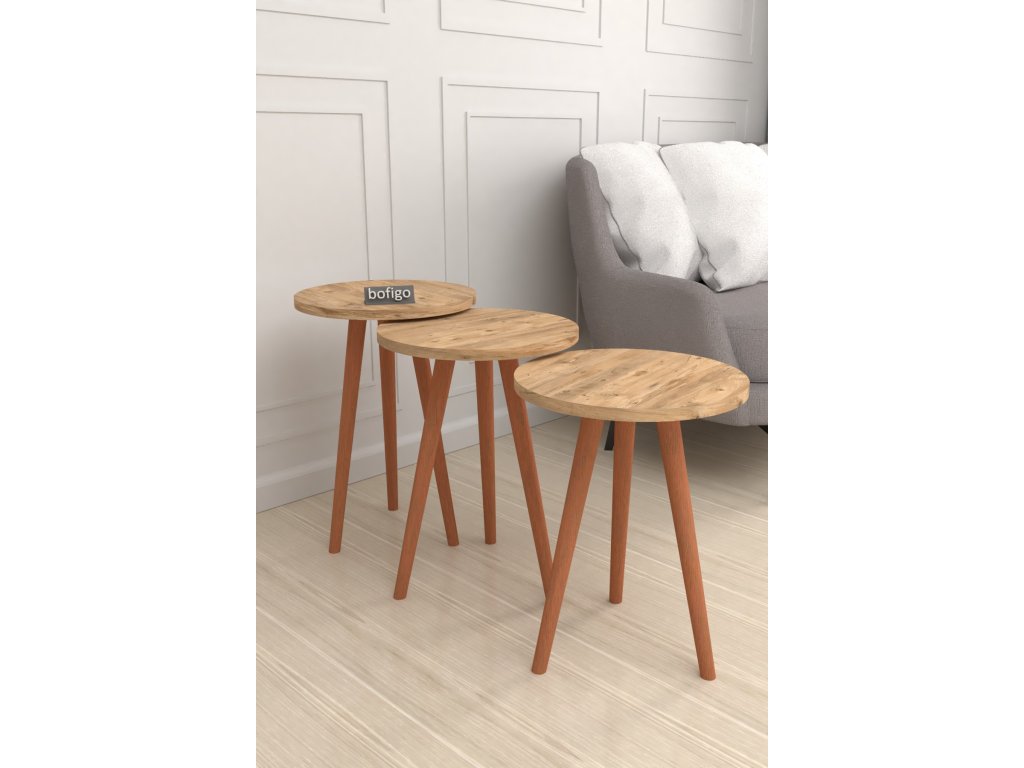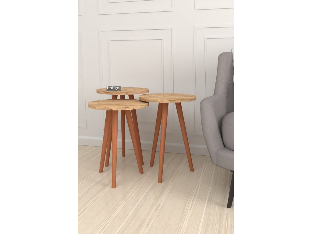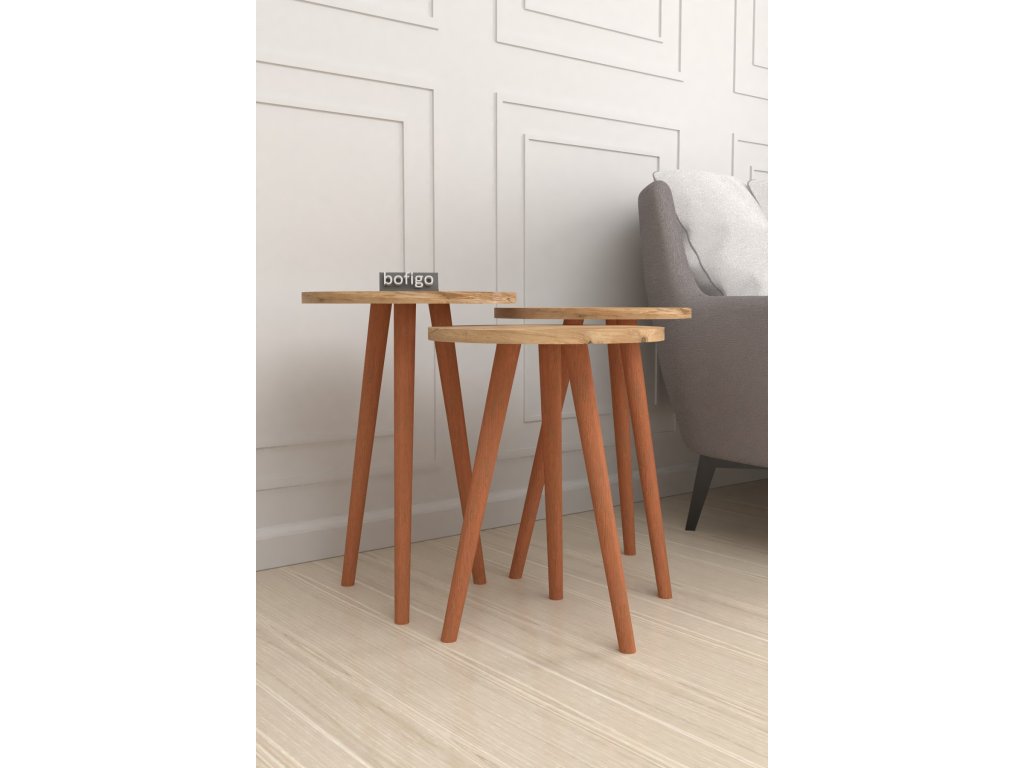 Stolky jsou vyrobeny z masivního dřeva. Jsou v kulatém provedení.