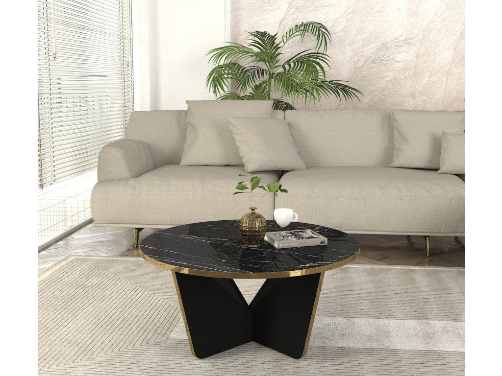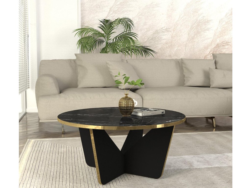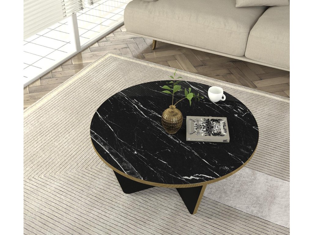 Konferenční stolek GERTA je vyroben z kvalitního materiálu LTD o tloušťce 18 mm, což zaručuje jeho pevnost a dlouhou životnost. Jeho elegantní kombinace černé barvy a mramorového vzhledu přidá vašemu obývacímu pokoji nádech luxusu a sofistikovanosti. Kulatý tvar stolku je ideální pro moderní interiéry, kde se stane středobodem vašeho obývacího prostoru.