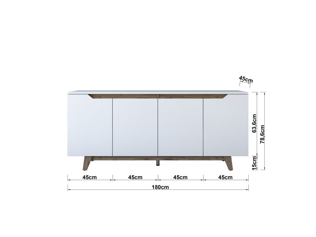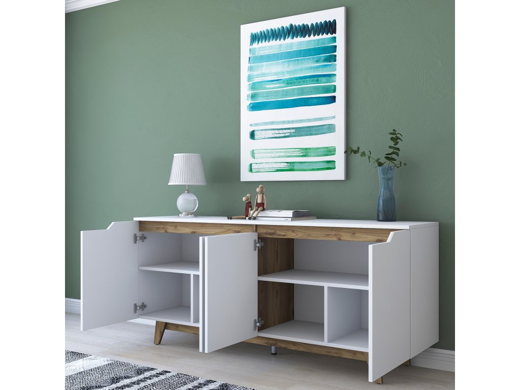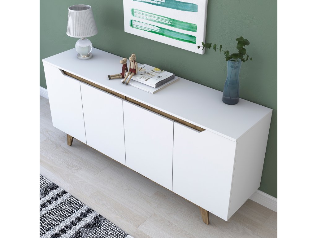 GODSEED Čtyřdvéřová komoda, bílá/ořech