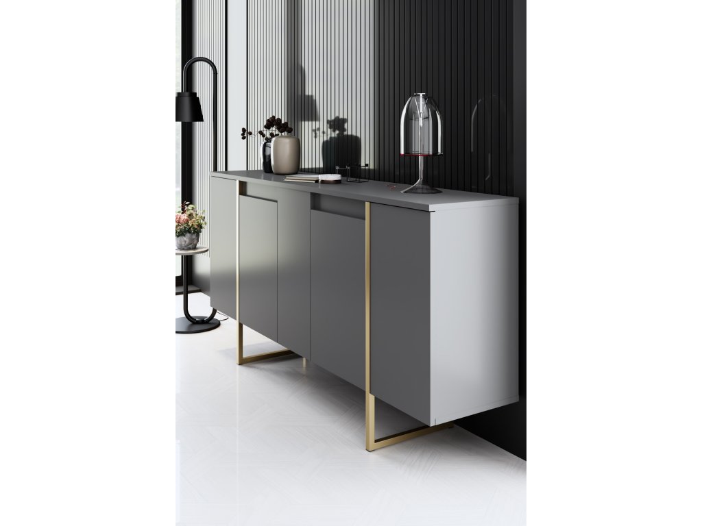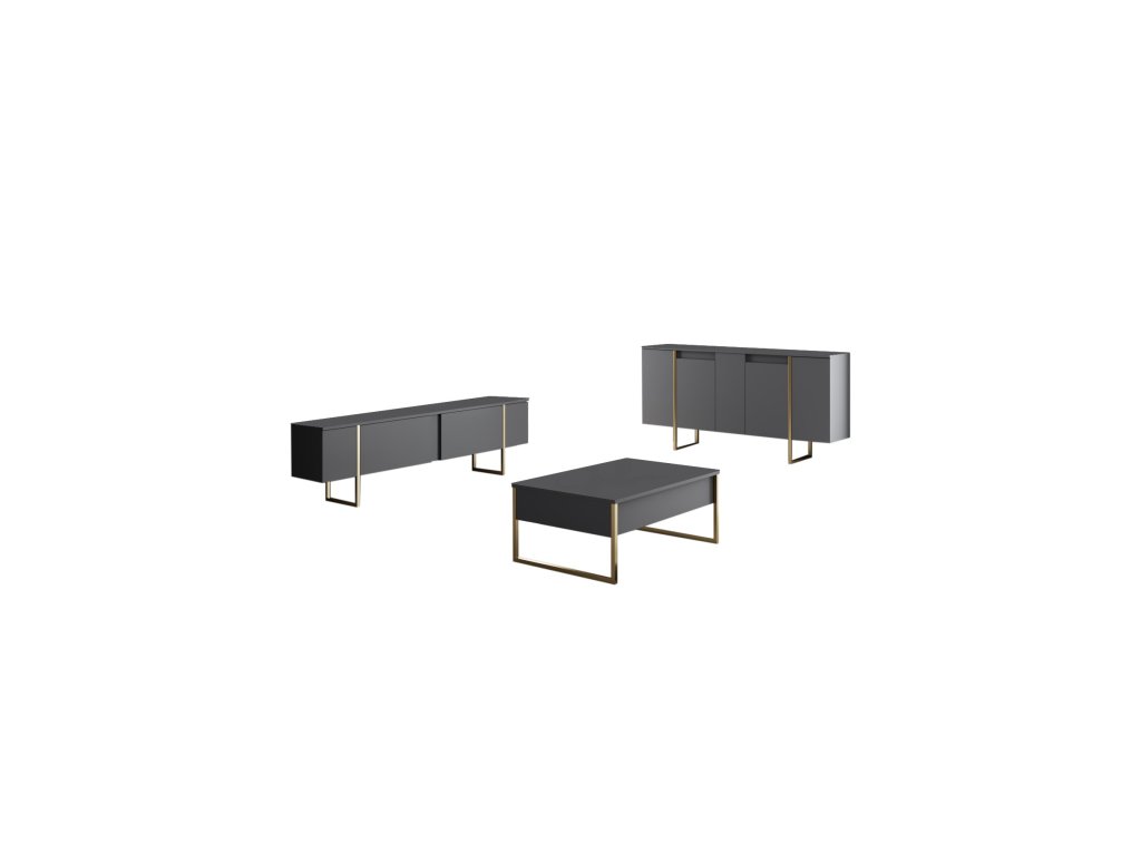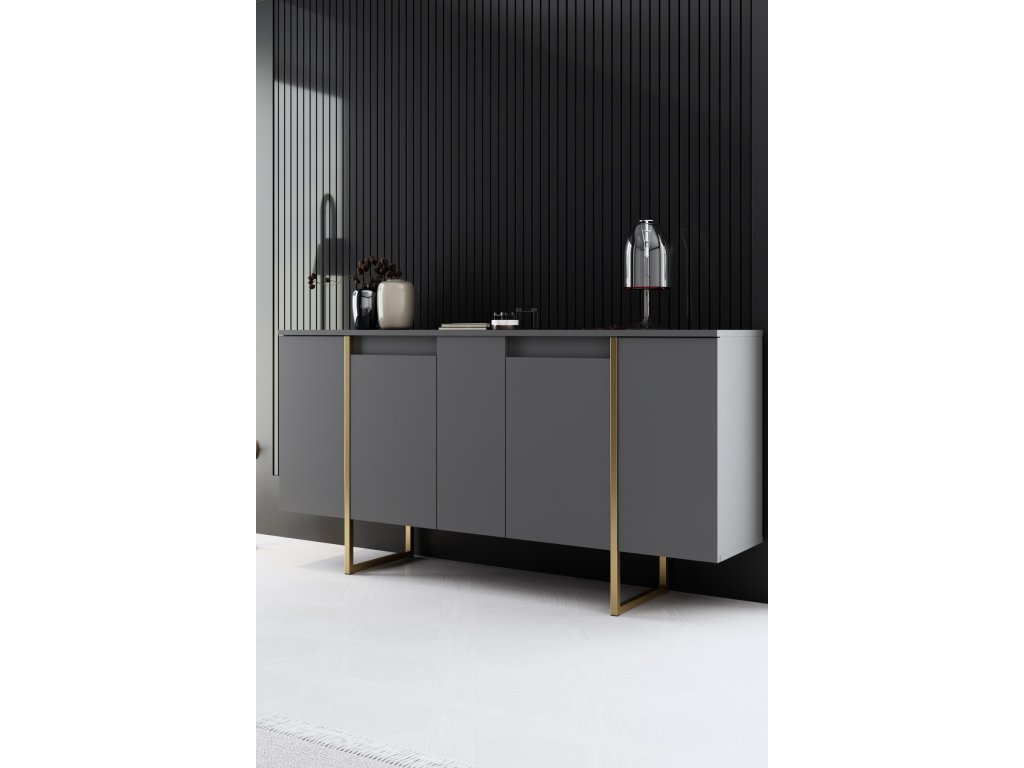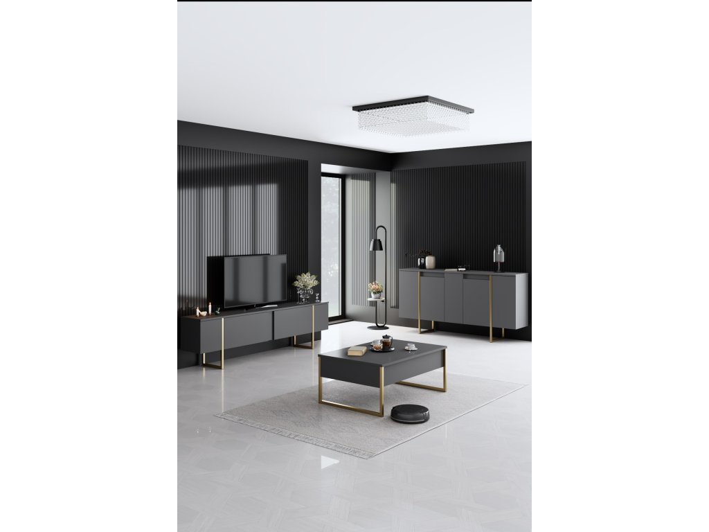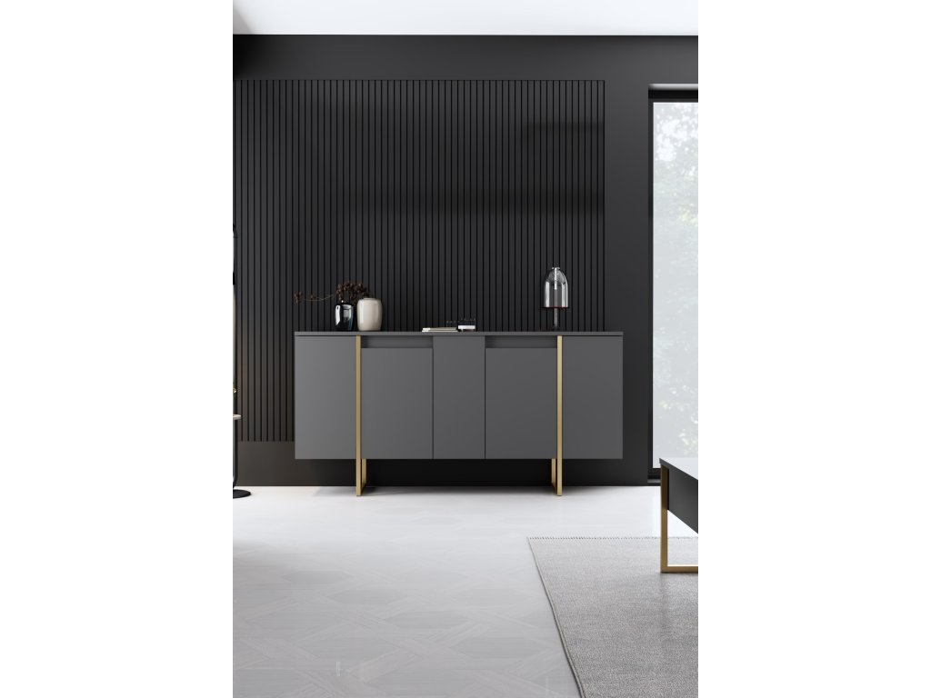 Pozdvihněte svůj obytný prostor s nádhernou komodou v barvě antracitu a zlata
