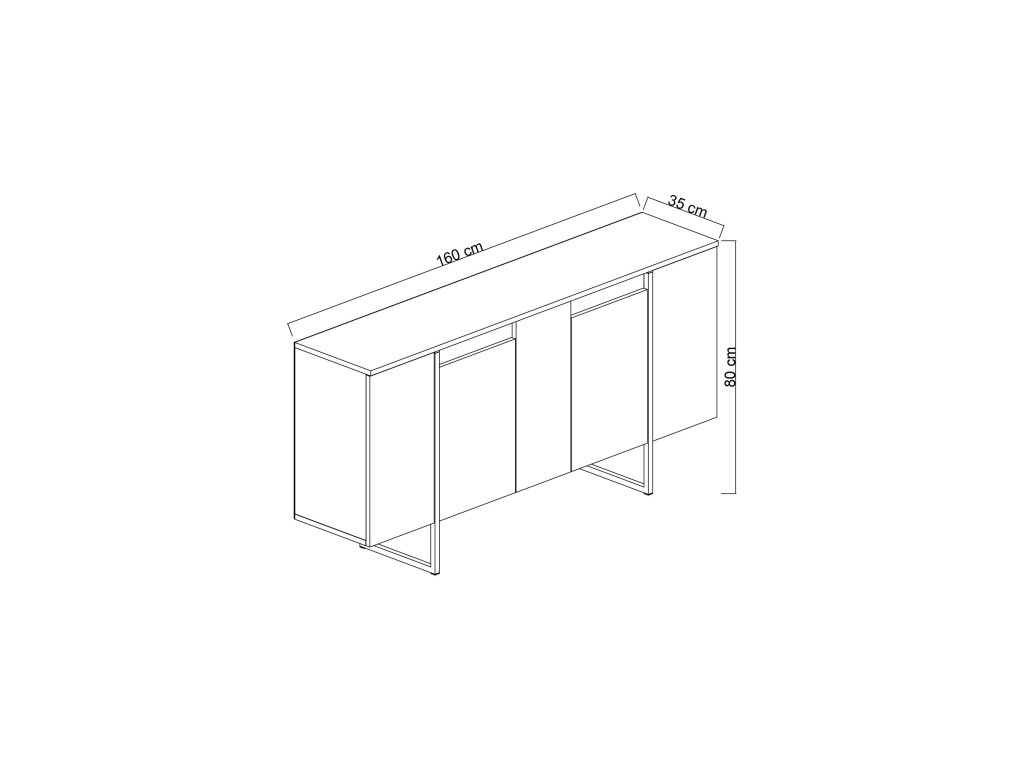 Všestranná funkčnost: S šířkou 160 cm, hloubkou 35 cm a výškou 80 cm nabízí tato komoda dostatek úložného prostoru pro vaše věci. Ať už potřebujete stylový povrch pro vystavení vašich oblíbených dekoračních předmětů nebo praktické úložné řešení pro vaše nezbytnosti, tato komoda vám pomůže.