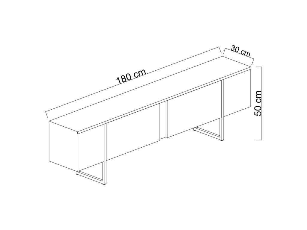S šířkou 180 cm, hloubkou 30 cm a výškou 50 cm nabízí tento televizní stolek dostatek prostoru pro umístění televize, herních konzolí, zvukového systému a dalších mediálních nezbytností. Rozlučte se s nepořádnými kabely a chaotickými zábavními centry – náš televizní stolek poskytuje úhledné a organizované řešení pro všechny vaše potřeby v oblasti zábavy.