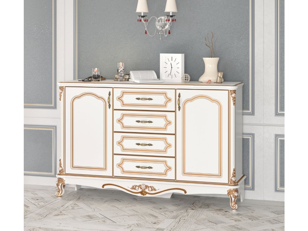 GOLDEN luxusní komoda, bílo zlatá