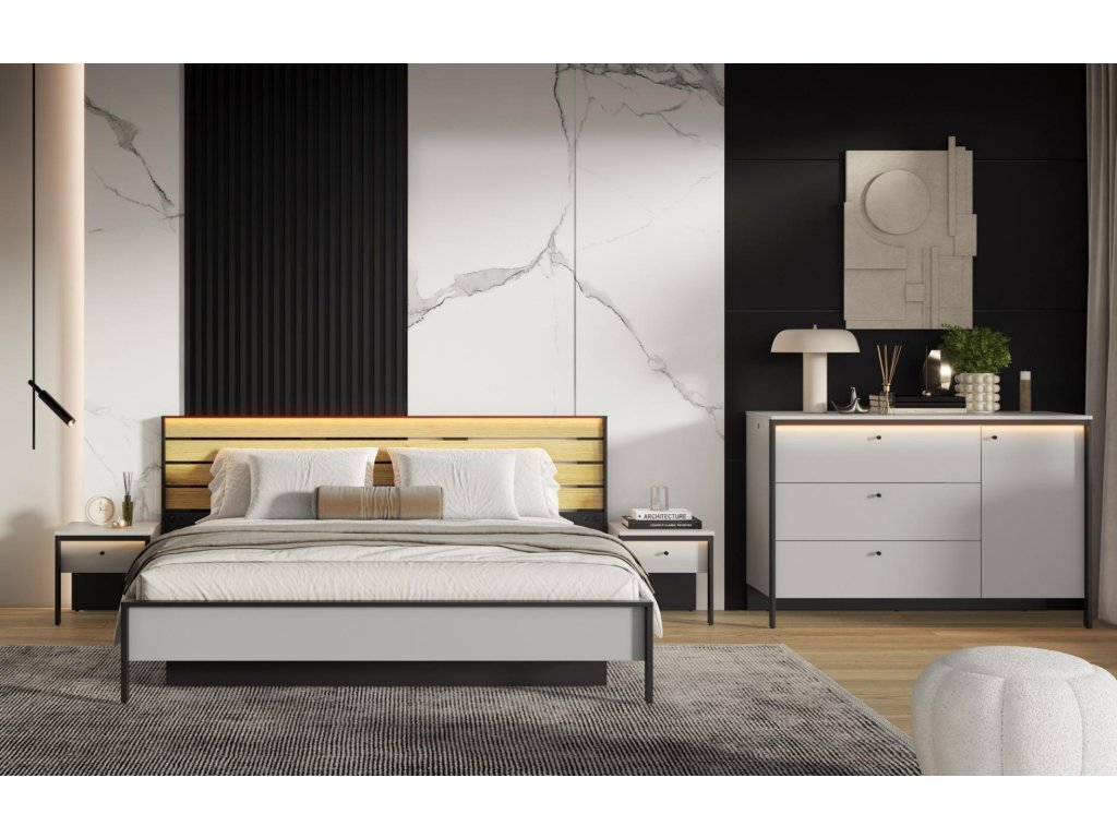 GRIS ložnicová sestava s LED osvětlením barva šedá/černá/dub
