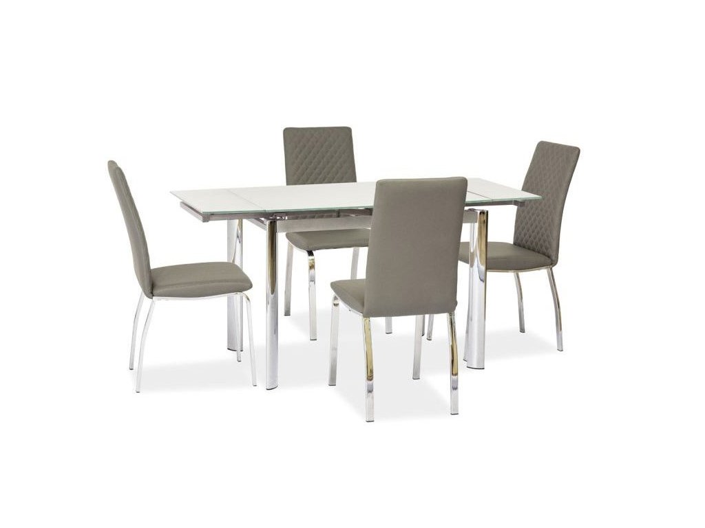 Rozkládací jídelní stůl GT-019 v kombinaci pochromovaného kovu a tvrzeného skla v barvě bílá (konstrukce stolu je kovová, vrchní deska skleněná). Stůl je vhodný pro 4 osoby. Rozkládá se jednoduchým způsobem, vysunutím dvou bočních desek zpod vrchní desky. Stůl má po rozložení rozměr 70x150 cm. Rozměry stolu v/š/h 76 x 100-150 x 70 cm. Dodáváno v demontu.Doplňkové parametry