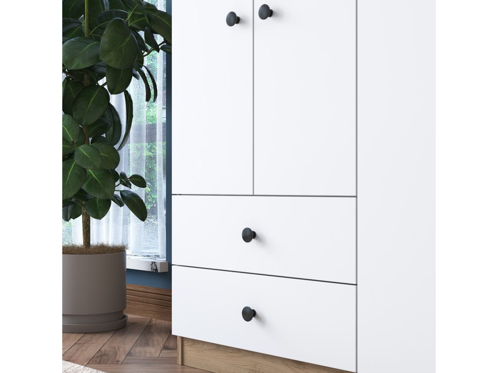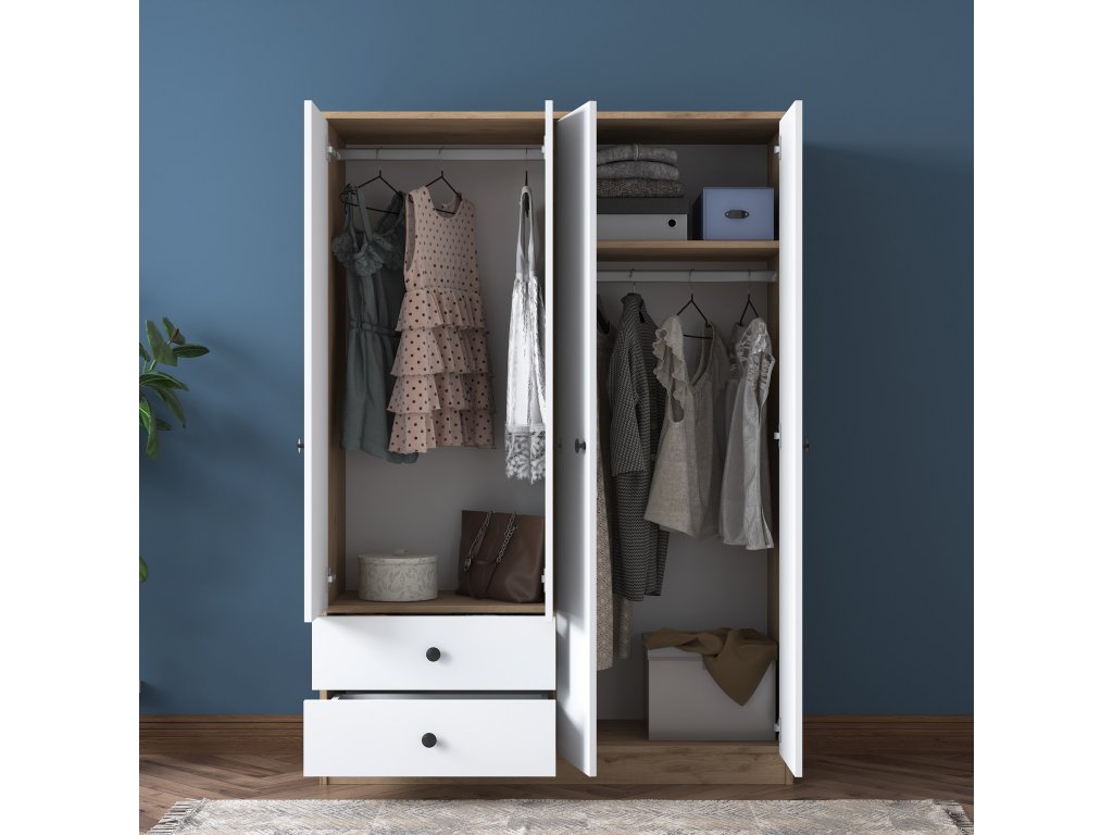 Šatní skříň HADES je ideálním doplňkem do každé moderní ložnice. Její design v kombinaci bílé barvy a dekoru ořechu přináší do interiéru eleganci a funkčnost. Díky praktickému uspořádání nabízí dostatek prostoru pro uschování oblečení i doplňků.