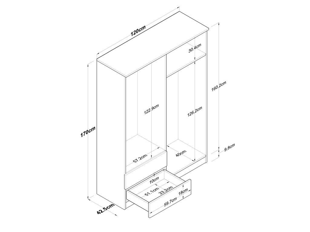- Rozměry: 170 x 120 x 42,5 cm – prostorná, ale kompaktní skříň.