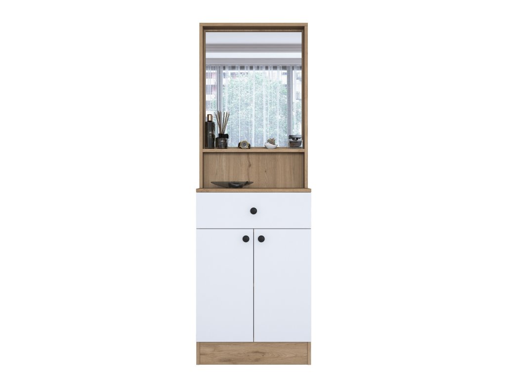 Tato předsíňová sestava HAIR nabízí praktické uspořádání prostoru. Skříňka na boty poskytuje dostatek úložného místa pro obuv, zatímco elegantní zrcadlo opticky zvětšuje prostor a zvyšuje světlost místnosti. Díky jedné zásuvce máte navíc prostor na klíče, doplňky nebo další drobnosti, které potřebujete mít vždy po ruce.