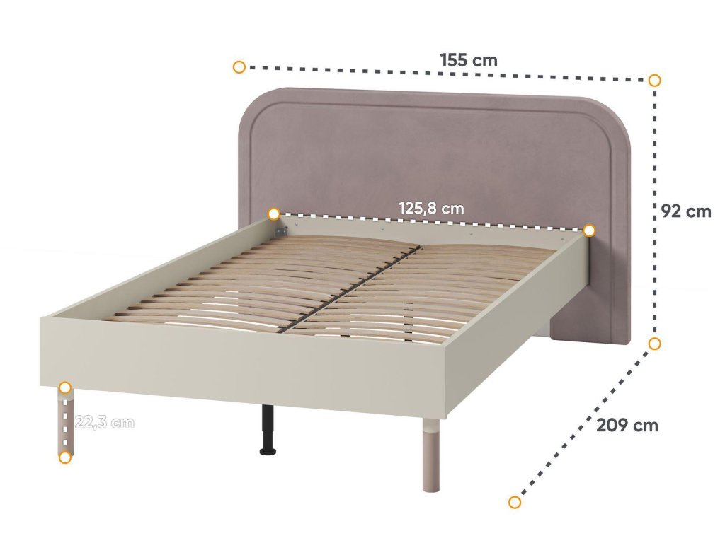 Postel s laťovým roštem v ceně a krásným čelem postele. Nábytek pro teenagery, který díky něžnosti hlavně ocení divky, nabízí moderní a praktické řešení do pokojů. Kombinace kašmírové a lanýžové barvy vytváří elegantní a univerzální design. Vyniká zaoblenými čely, asymetrickým stylem a štíhlými nožkami, které dodávají lehký vzhled. Vyroben je z odolné laminované desky o tloušťce 16 mm. Ideální volba pro stylový a funkční prostor. Vhodná matrace je 120 x 200 cm. Dodáváme v demontovaném stavu.