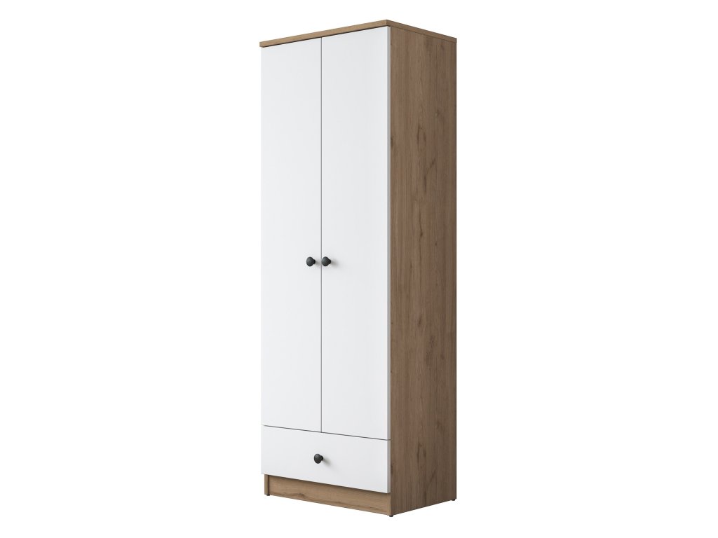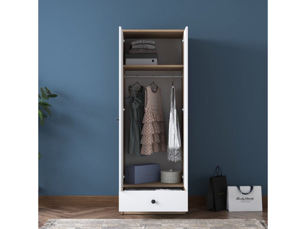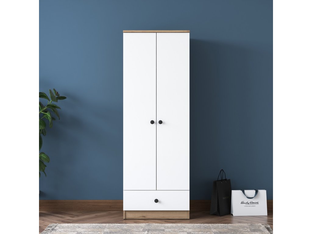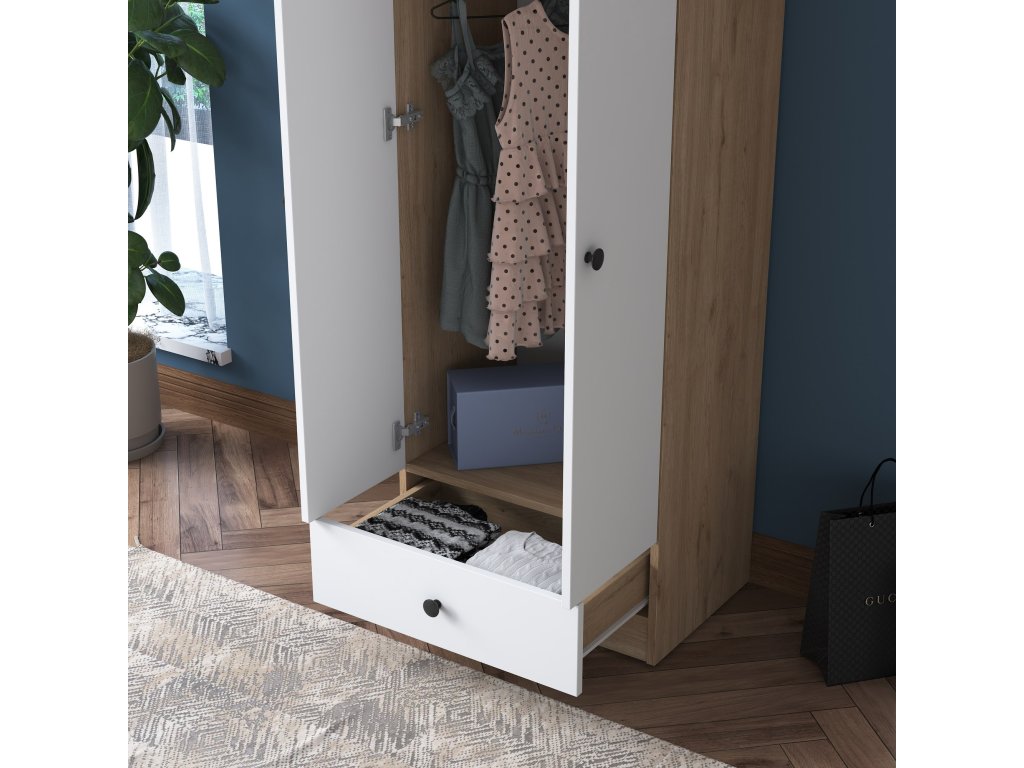 HAT dvoudveřová šatní skříň, bílá/ořech