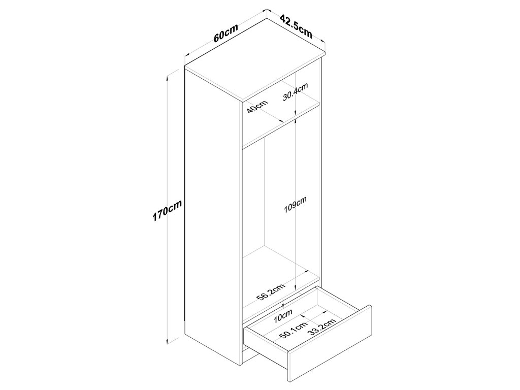 - Rozměry: 170 x 60 x 42,5 cm – praktická velikost pro různé prostory.