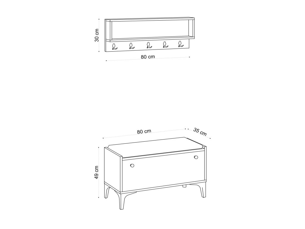 - Rozměry botníku: Šířka: 80 cm, Výška: 49 cm, Hloubka: 35 cm