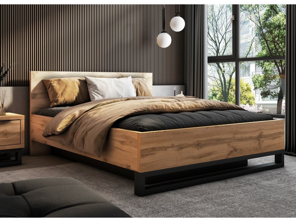 HELL S 51 postel 160 cm s výklopným roštem, dub Wotan / černá