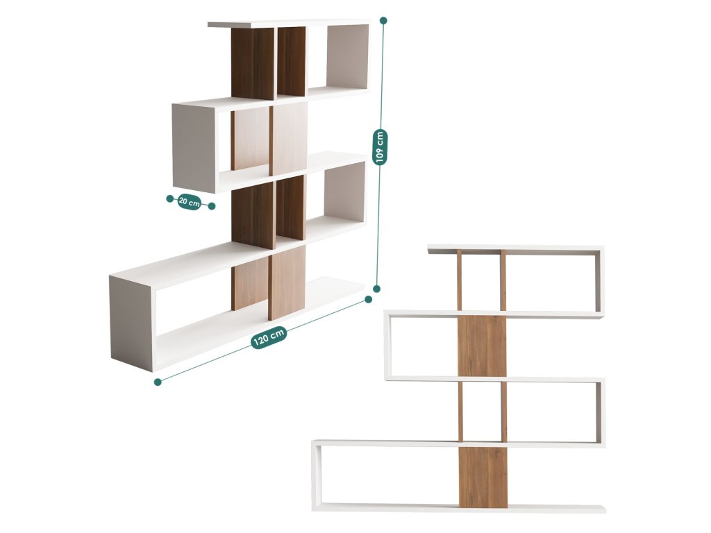 Knihovna je navržena v krásné kombinaci bílé a ořechové barvy, což vytváří vizuálně příjemný kontrast, který dodá každé místnosti nádech elegance.
