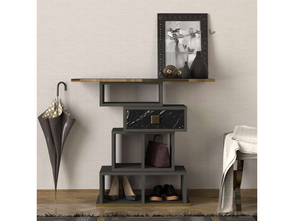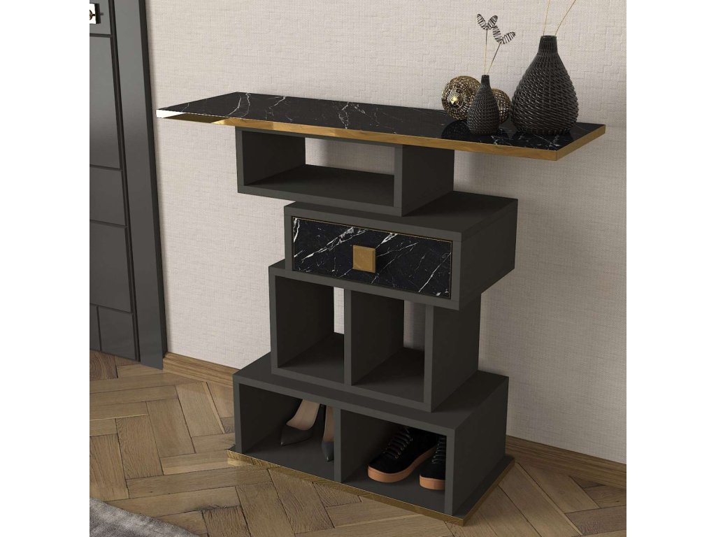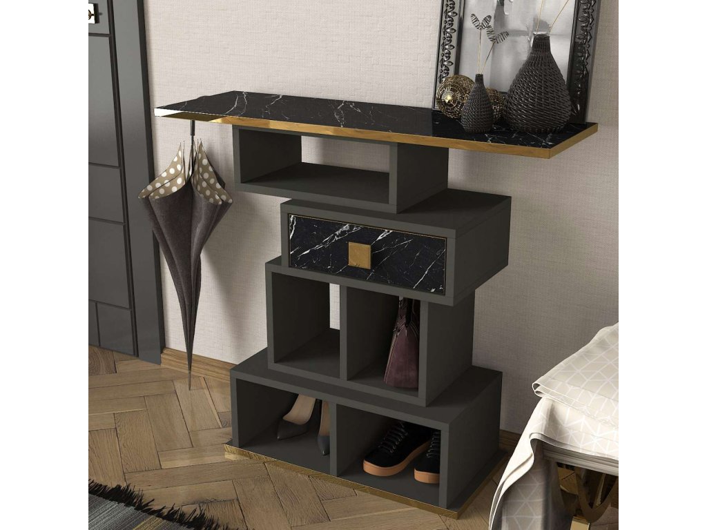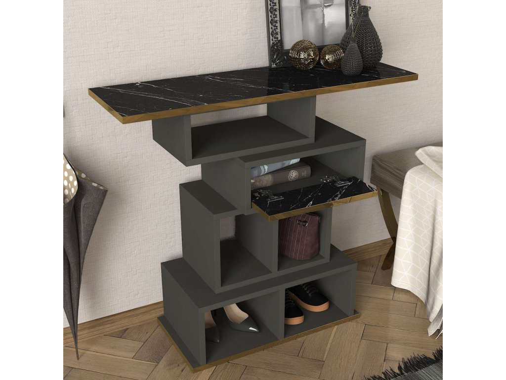 HERTHA luxusní konzolový stolek, antracit/černý mramor