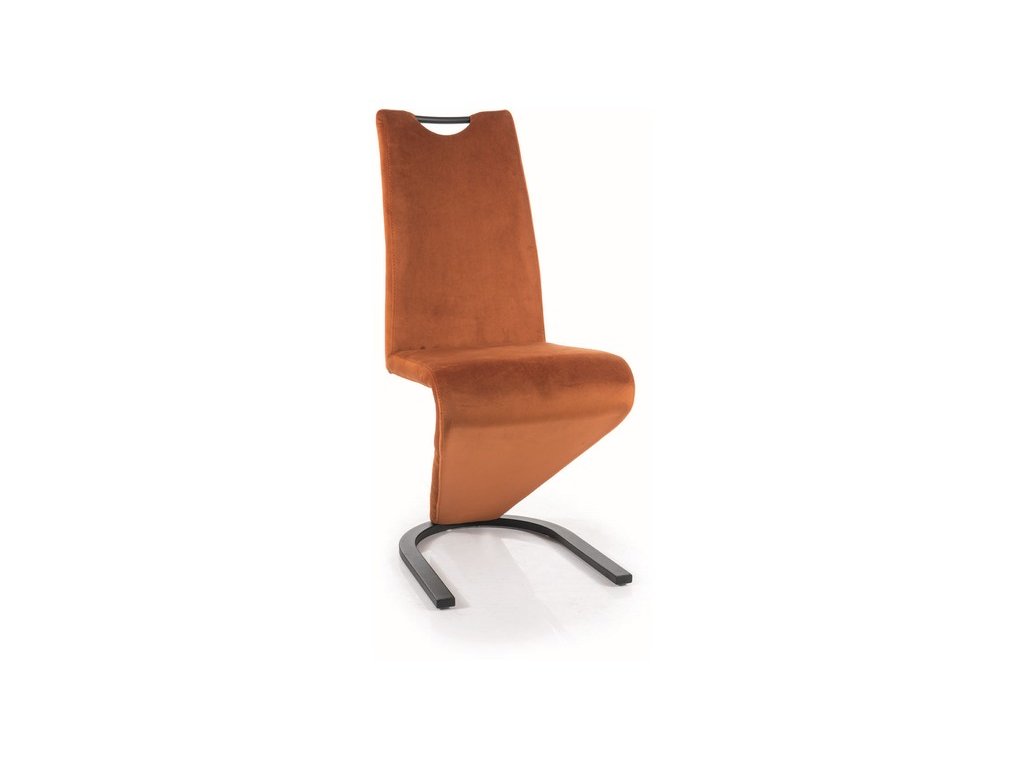 Sedací a opěrková část je čalouněna kvalitní sametovou látkou BLUVEL 4215 ve skořicovém provedení. Podstavec židle je z kovu. V horní části opěrky židle je elegantní rukojeť, která zaručí snadnou manipulaci se židlí.