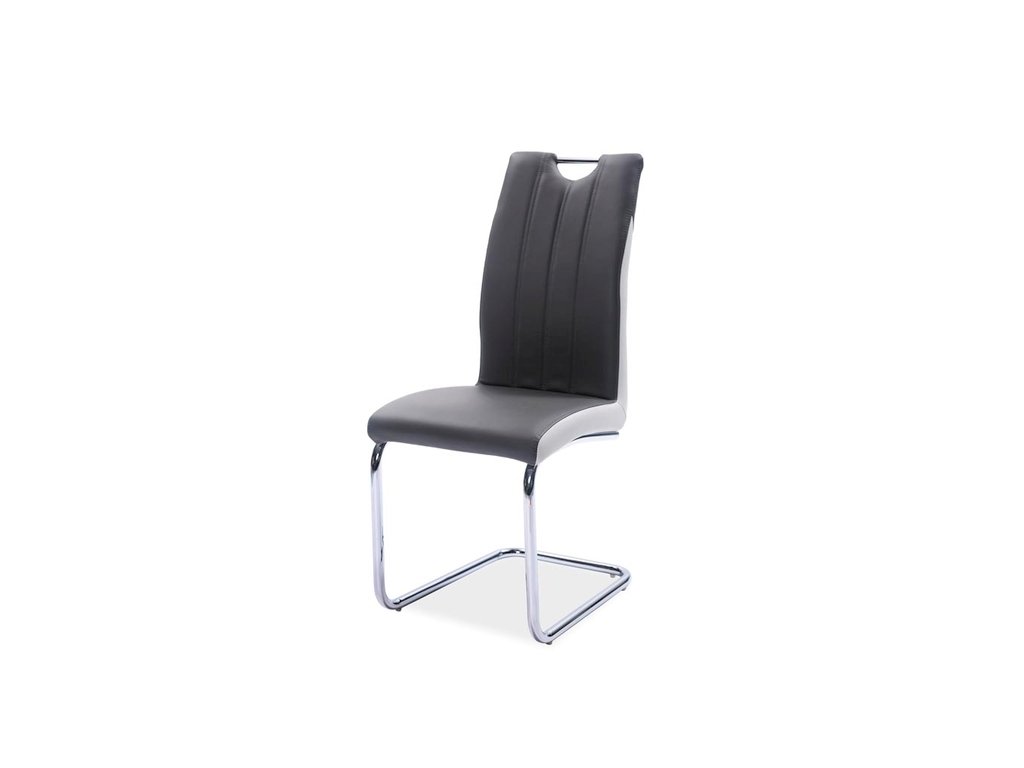 Moderní jídelní židle HK-342 s elegantním světle šedým pasem na boku sedací i zádové části. Židle je potažena eko-kůží v šedém provedení, dostupná je i v provedení cappuccino. V horní části je praktická rukojeť pro snadné přenášení židle. Židle je vhodná do kuchyně, jídelny i restaurace či kavárny. Podstavec židle je z pochromovaného kovu ve tvaru písmene U, což Vám umožní jemné pohupování. Dodáváno v demontu. Rozměry židle: Celková výška židle: 98 cm Výška sedáku: 46 cm Hloubka sedáku: 42 cm Šířka sedáku: 43 cmDoplňkové parametry