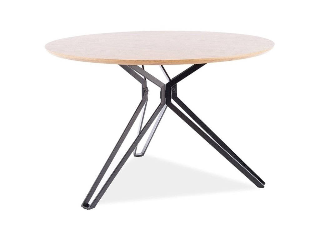 Jídelní stůl HOKELIA je v atraktivním a stylovém provedení. Je v kulatém tvaru. Je vhodný do moderní kuchyně či jídelny. Deska stolu je vyrobena z přírodní dýhy. Konstrukce je kovová. Barevné provedení je v kombinaci dubu a černé barvy.