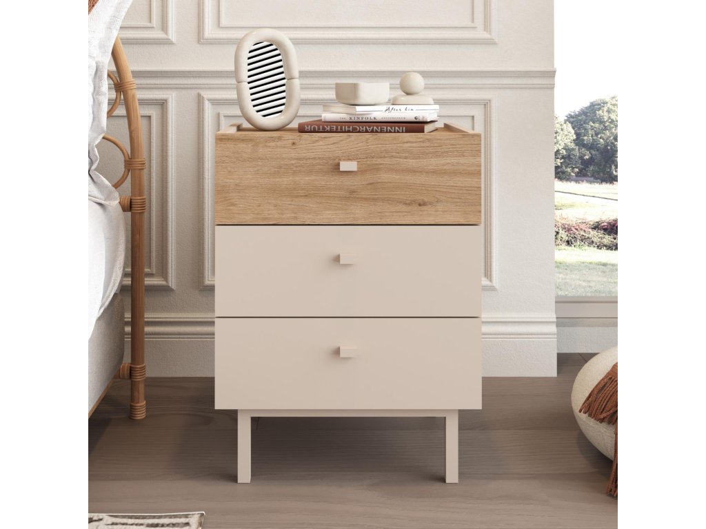 BURN noční stolek se třemi šuplíky, sepet/coast